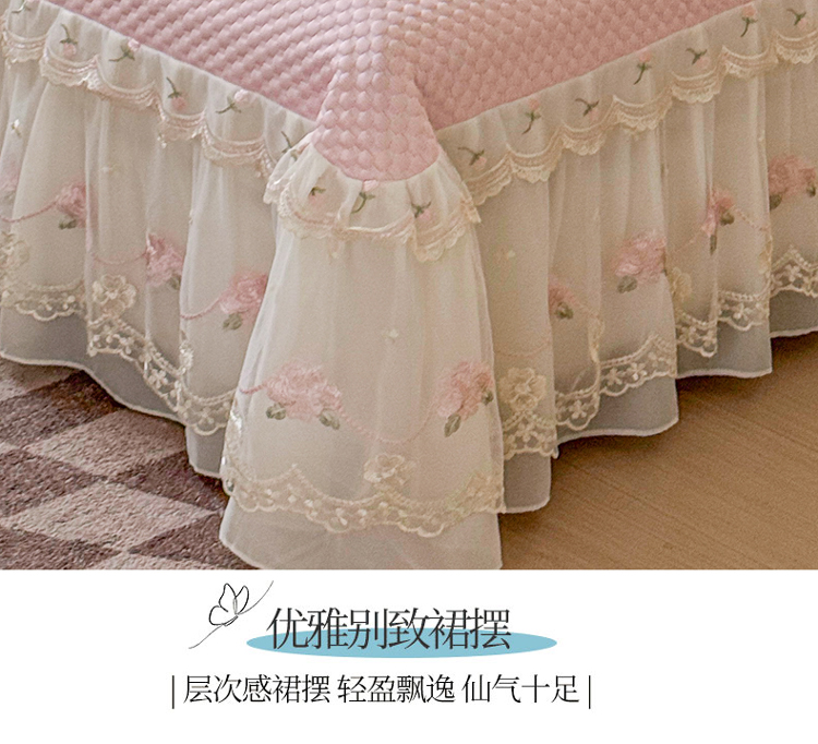 漫布云2025秋冬新款11斤230g全消光牛奶绒夹棉床盖款四件套纯色蕾丝花边刺绣床裙款床盖,蝶恋花-梦幻紫, 蝶恋花-嫩黄 ,蝶恋花-新芽绿, 蝶恋花-婴儿蓝, 蝶恋花-樱花粉