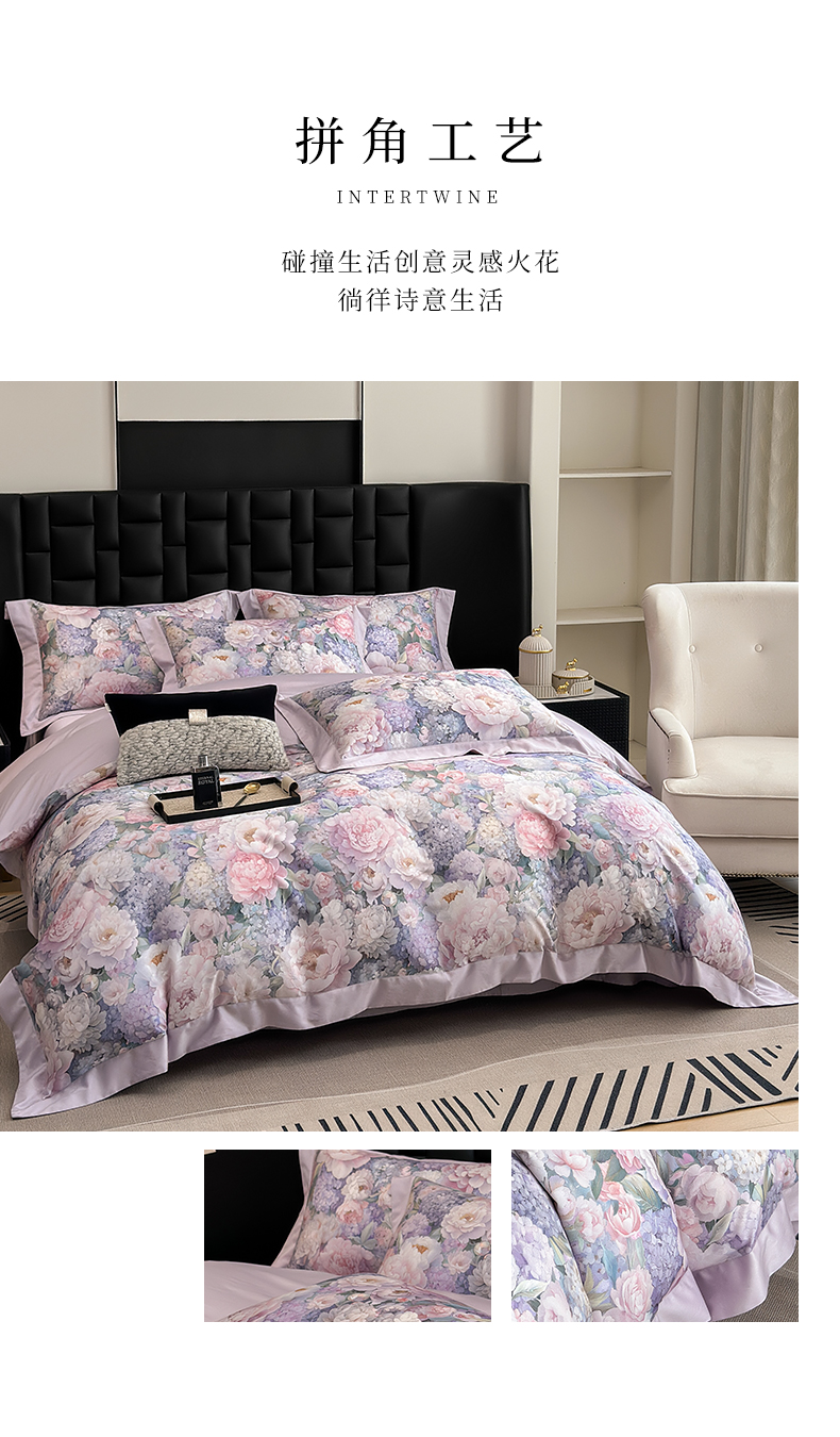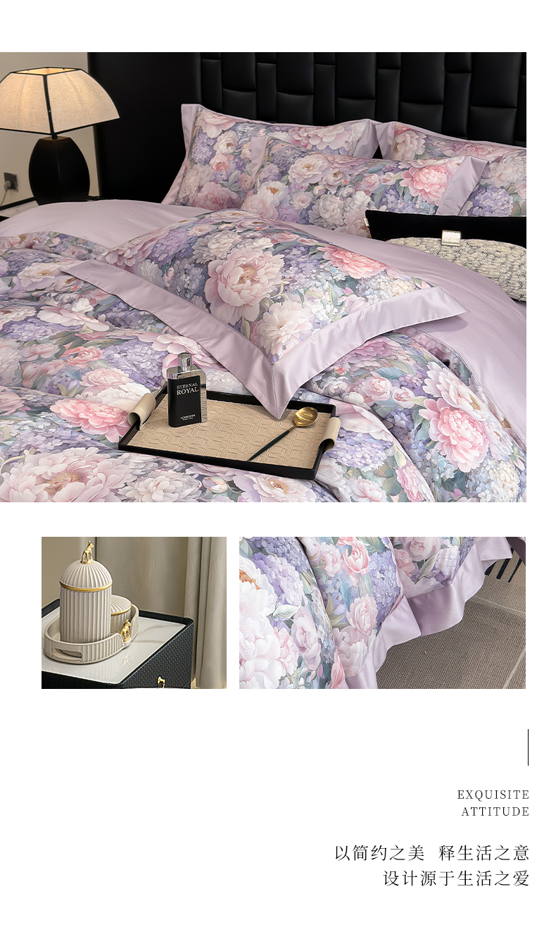 (总)元元家居(元元被业) 2025秋冬新款百支长绒棉纯棉贡缎工艺款四件套-魅影系列,魅影-布鲁灰,魅影-典雅白,魅影-香槟金,魅影-优雅粉