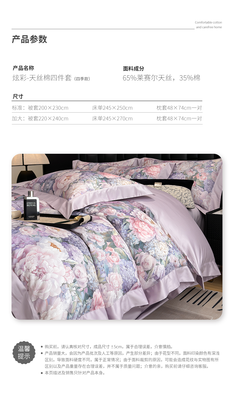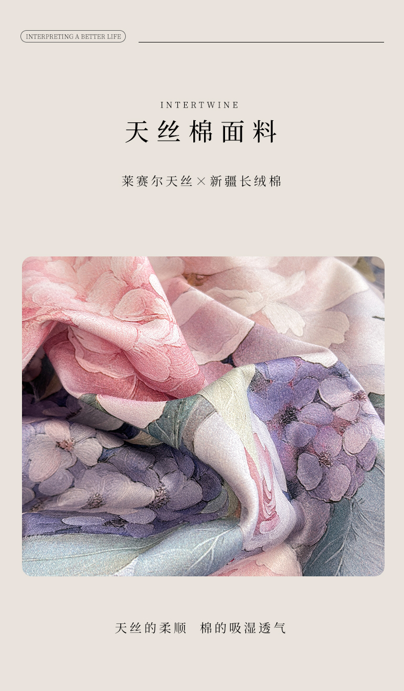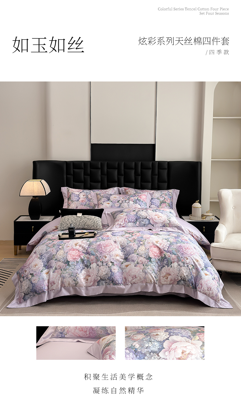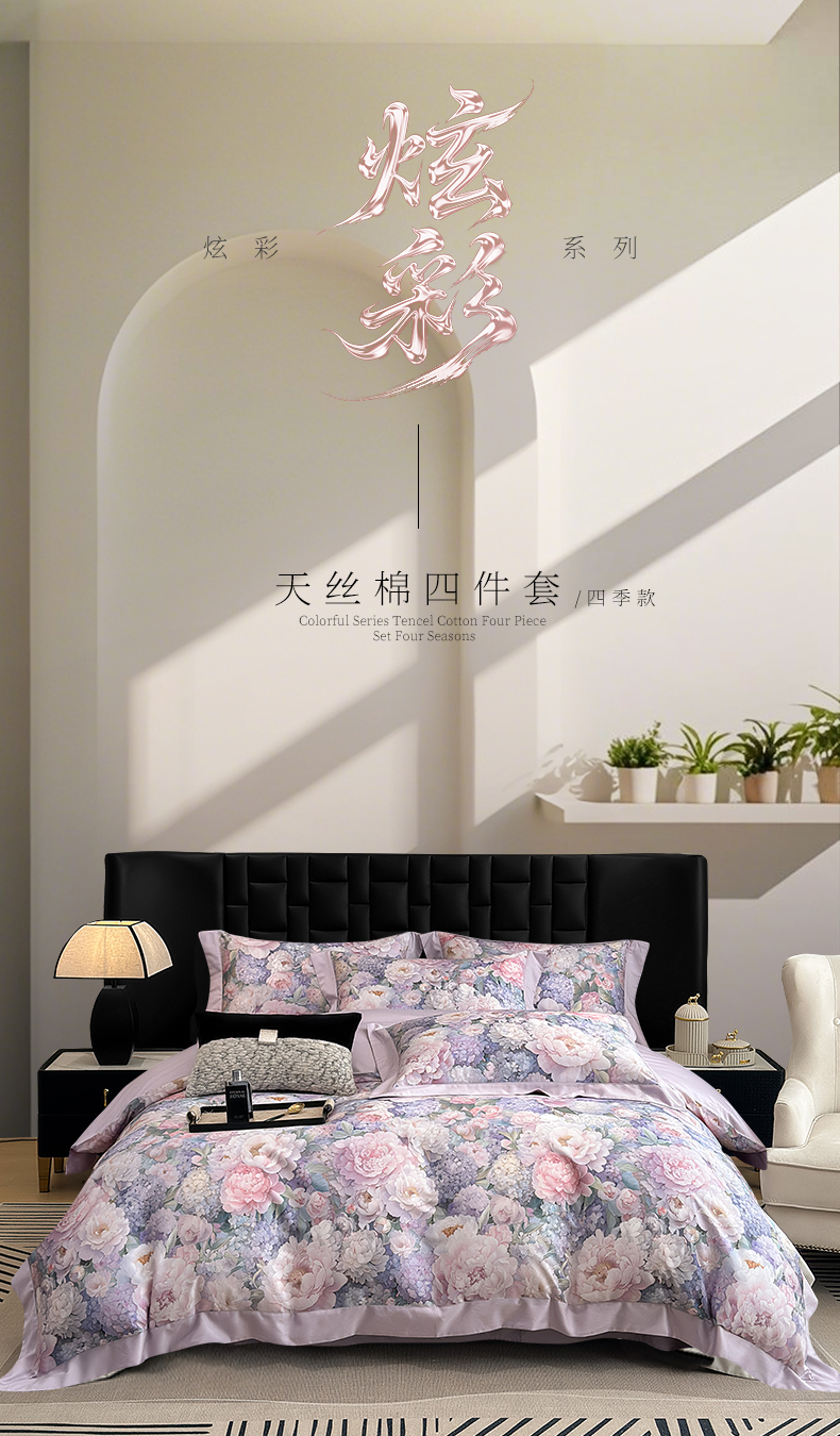 商品名称:元元家居(元元被业) 2026新款天丝棉四季款四件套-炫彩系列 如玉如丝