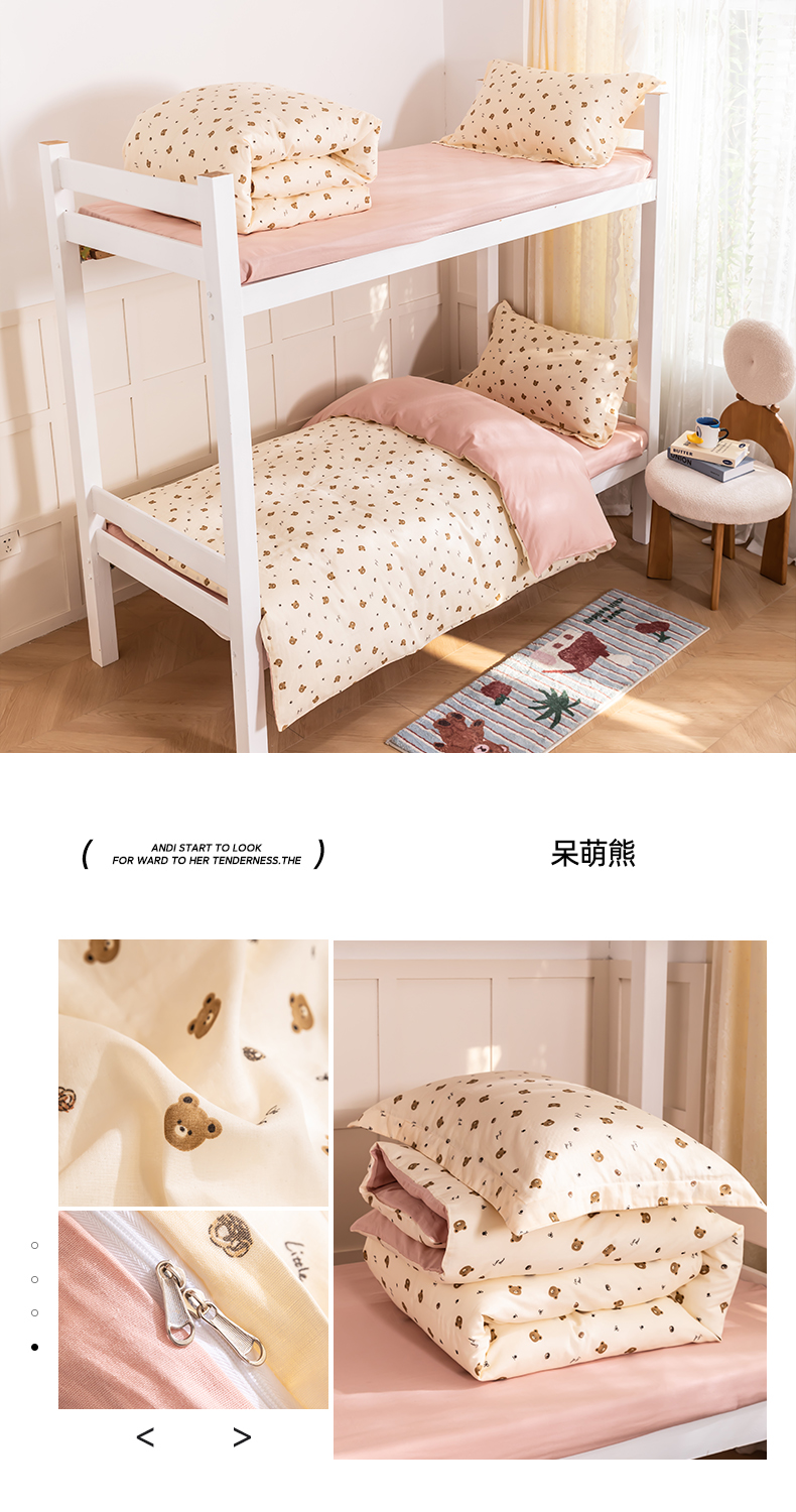 当前位置: 91家纺网 > 商品网购 > 床品套件 > 三件套 > 锦罗绣 2025新款全棉双层纱学生套件三件套 呆萌熊