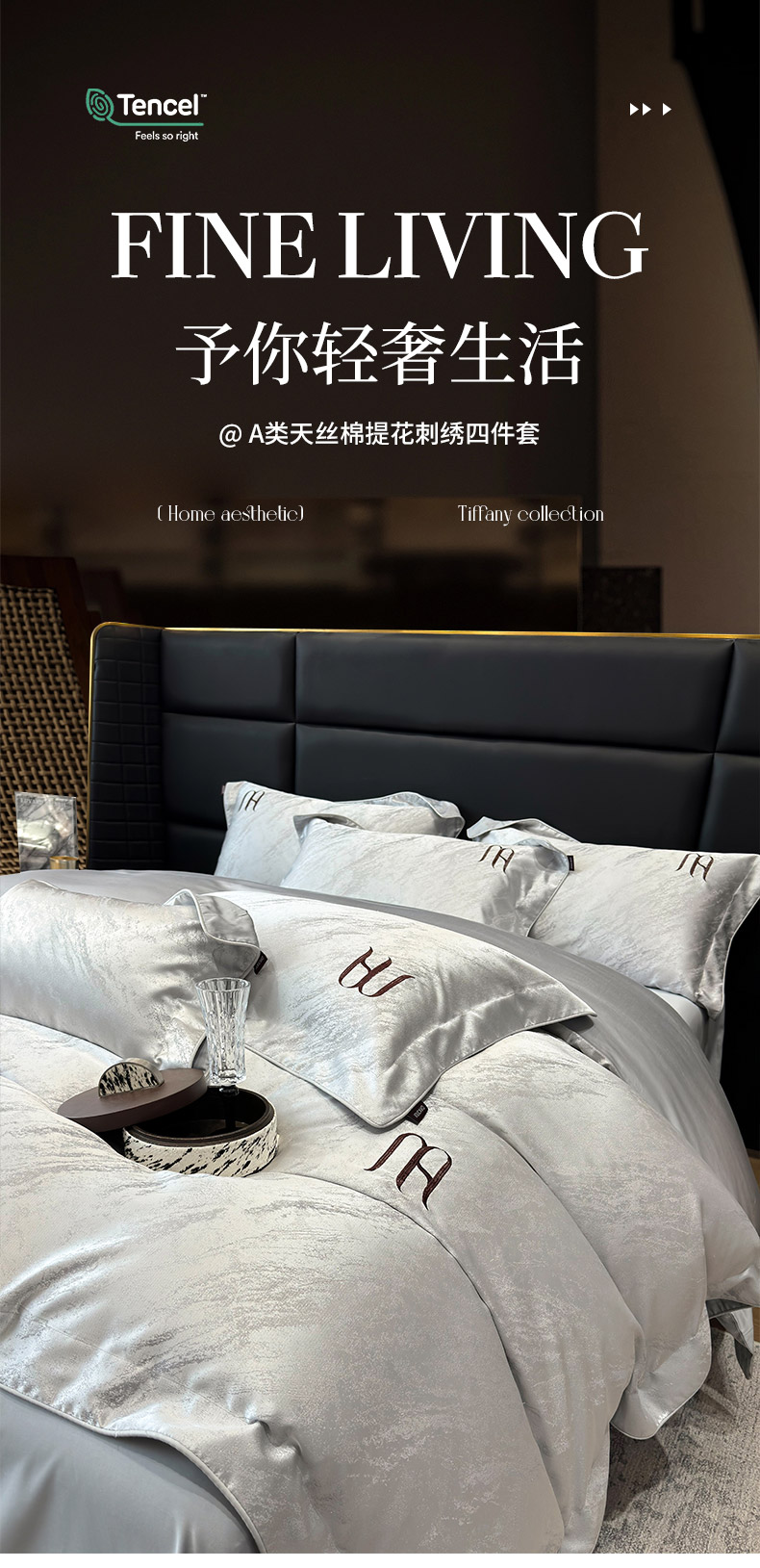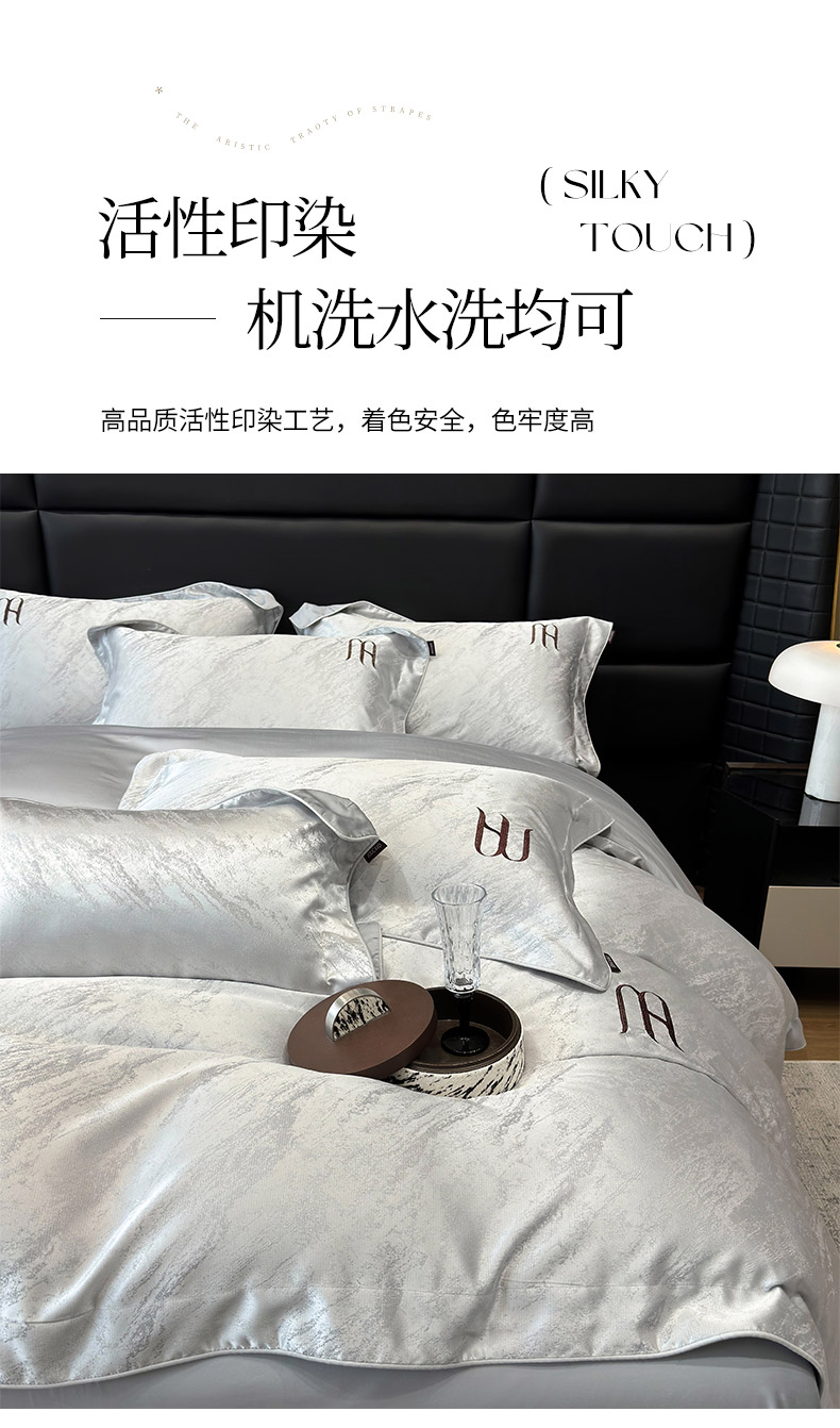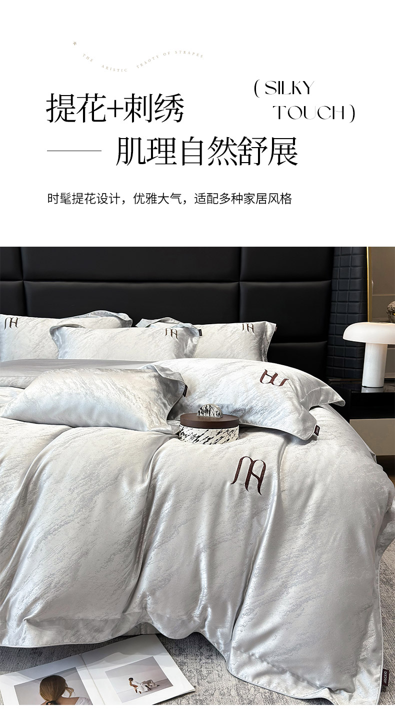 当前位置: 91家纺网 > 商品网购 > 床品套件 > 四件套 > 提花四件套 > 2025春夏新款A类天丝棉提花四件套-丝蕴 丝蕴-蒂奥银