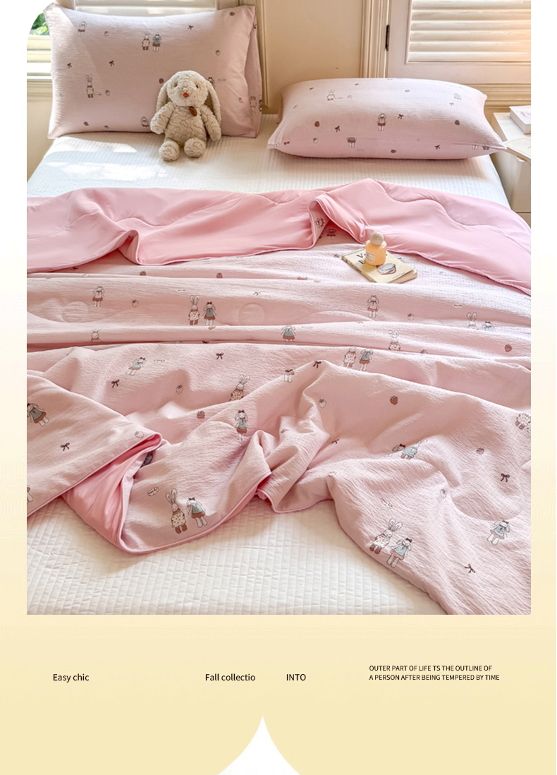 商品名称:丽美人家纺 2025新款爆款双拼皱皱纱冰皮被夏被夏凉被空调被 冰皮-兔小姐