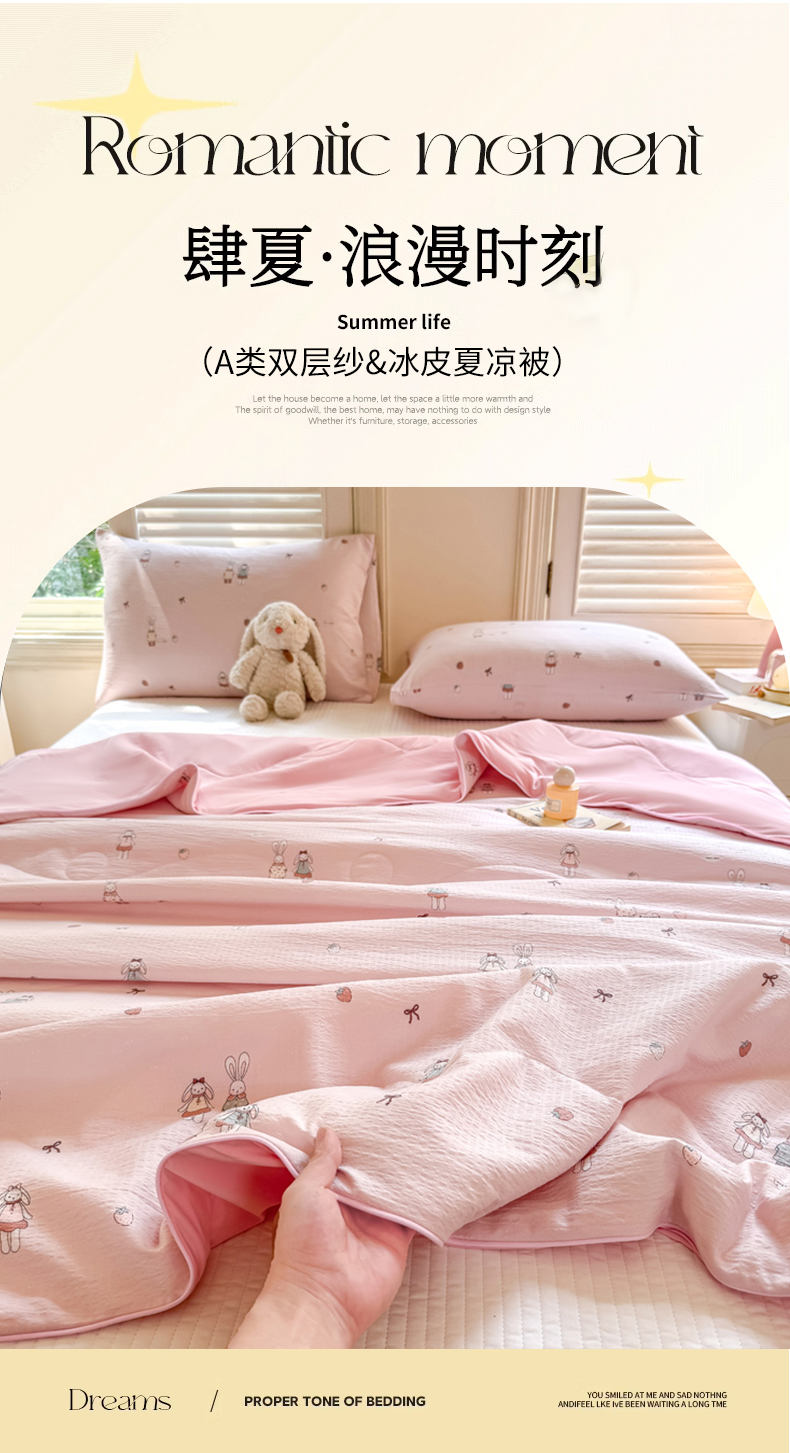 丽美人家纺 2025新款爆款双拼皱皱纱冰皮被夏被夏凉被空调被 冰皮-兔小姐