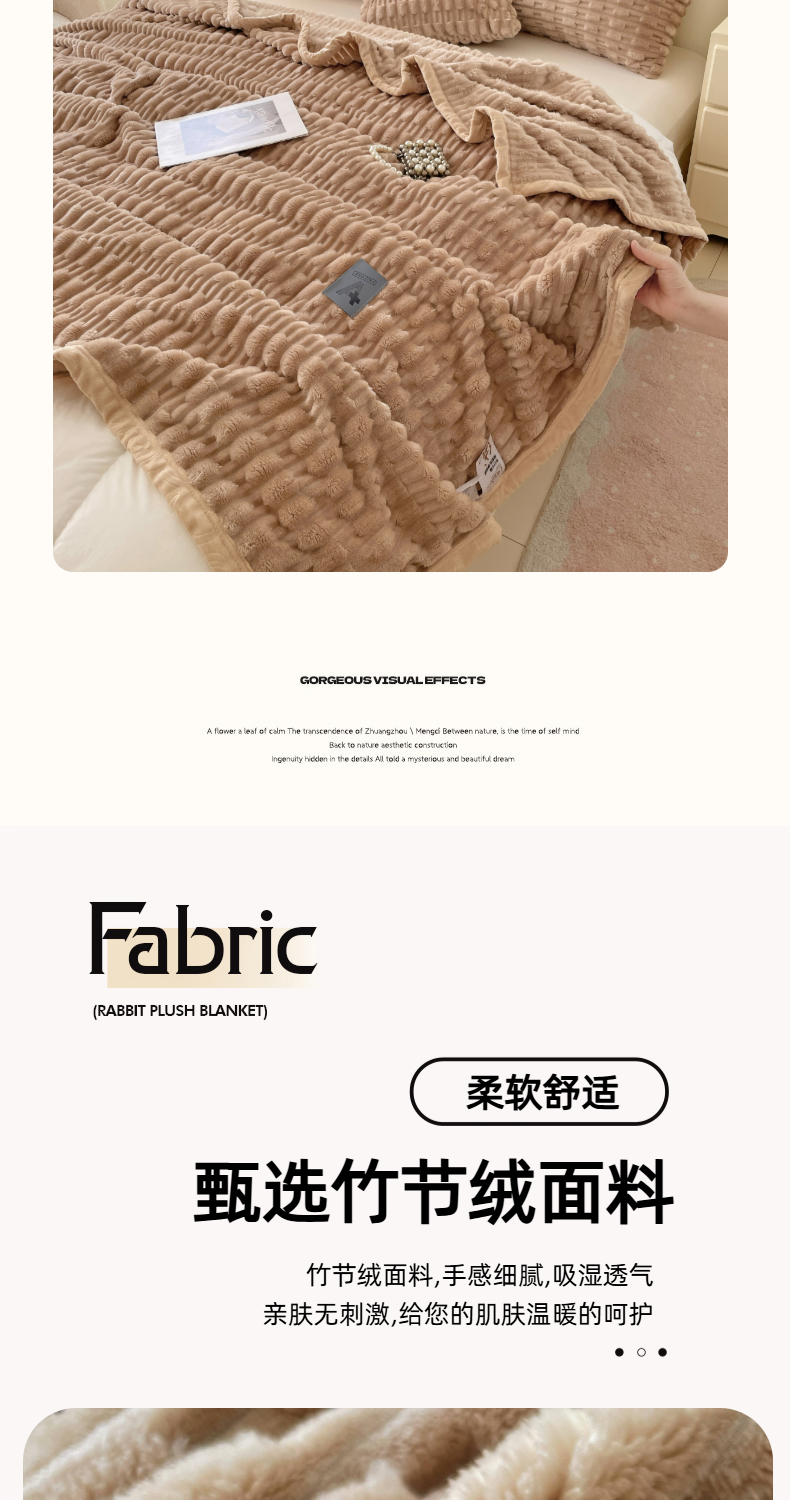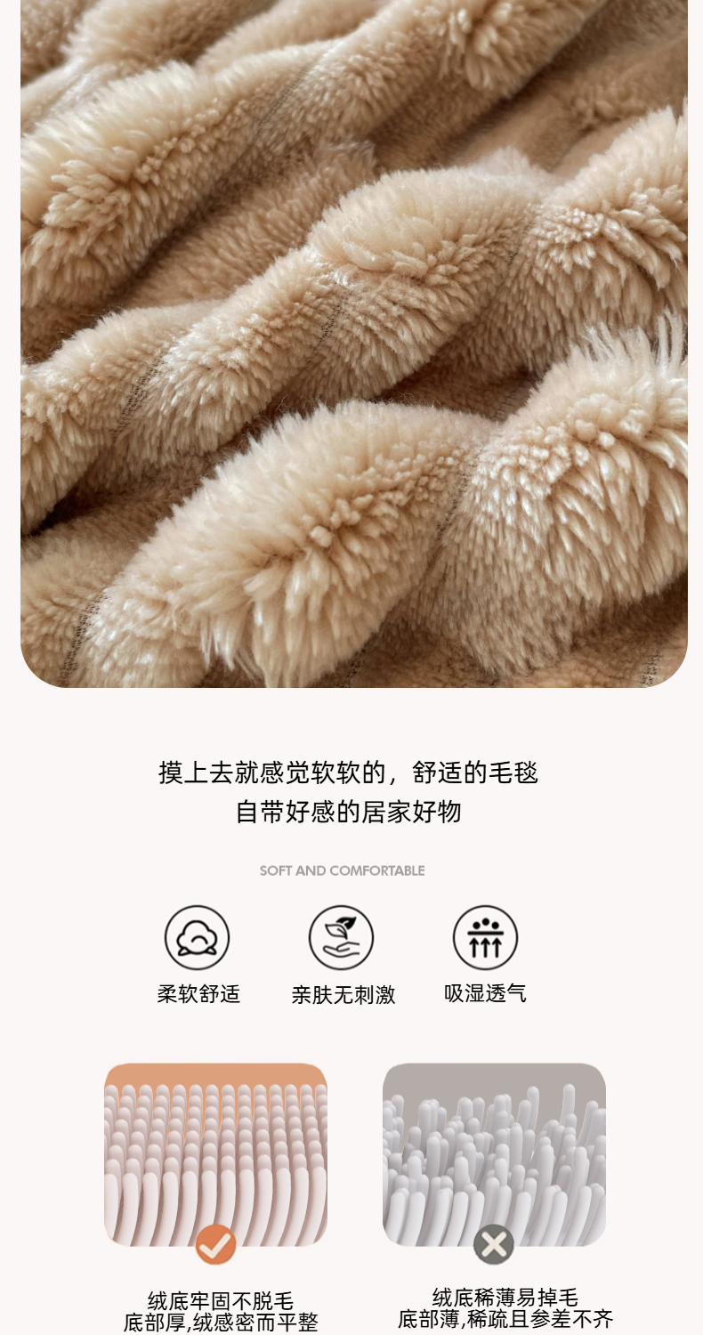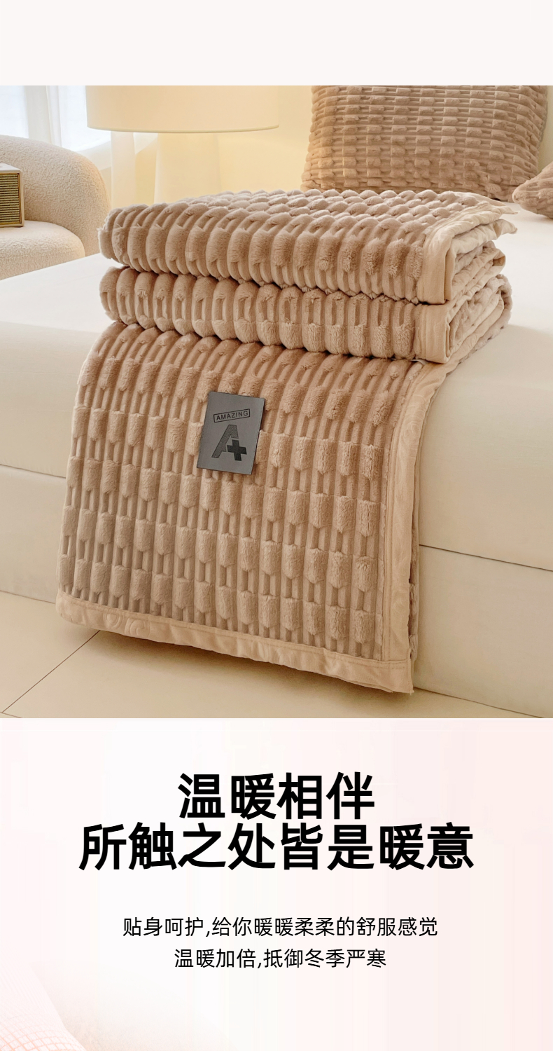 商品名称:楼兰公主 2025新款竹节绒毛毯 卡其色
