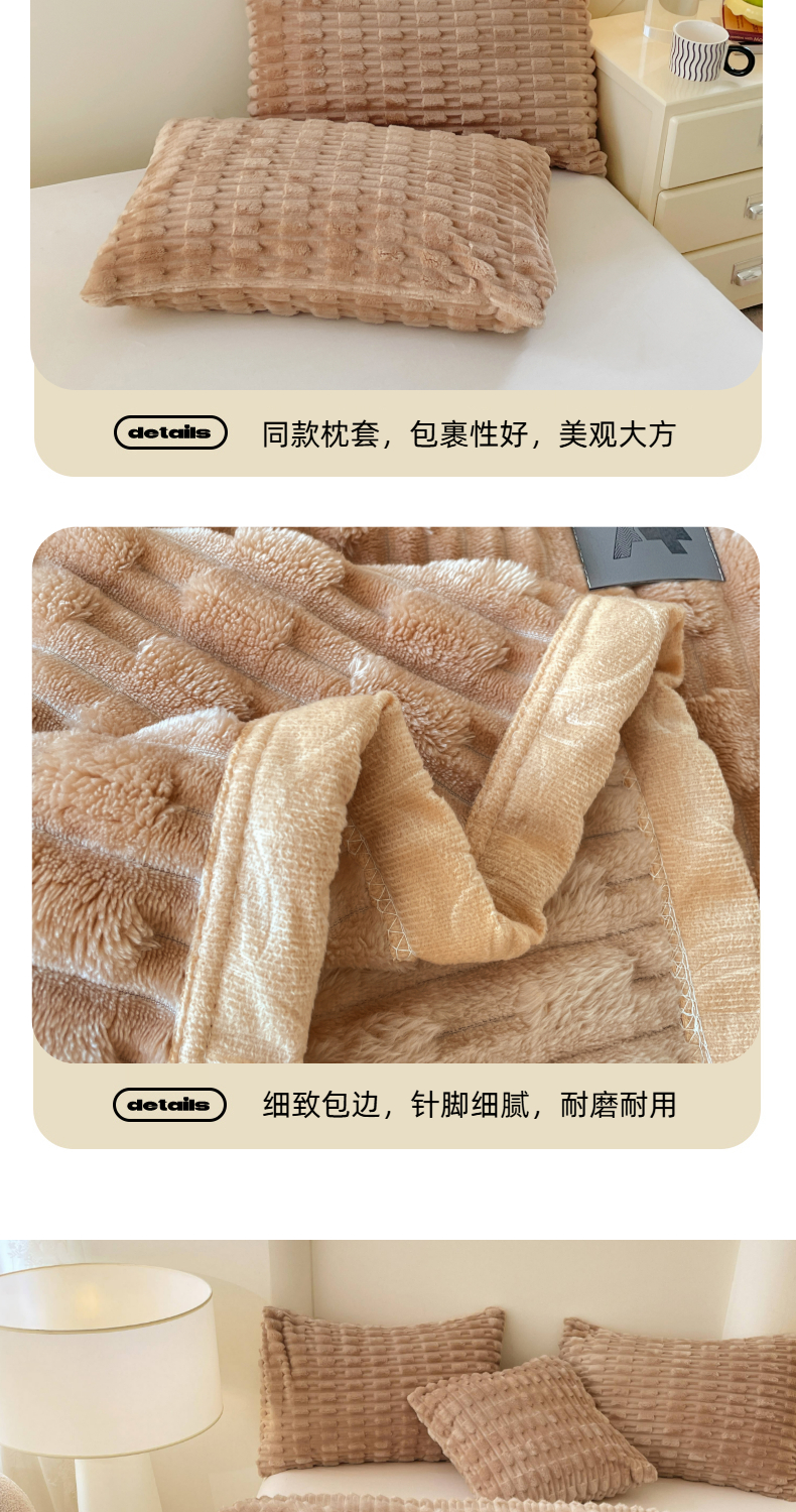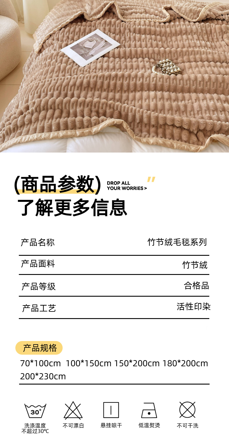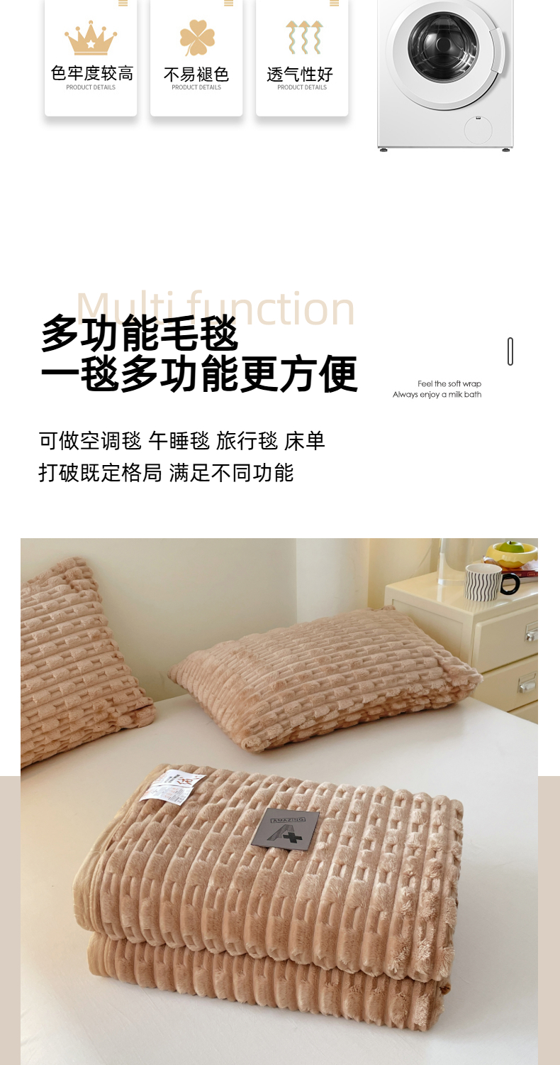 商品名称:楼兰公主 2025新款竹节绒毛毯 卡其色