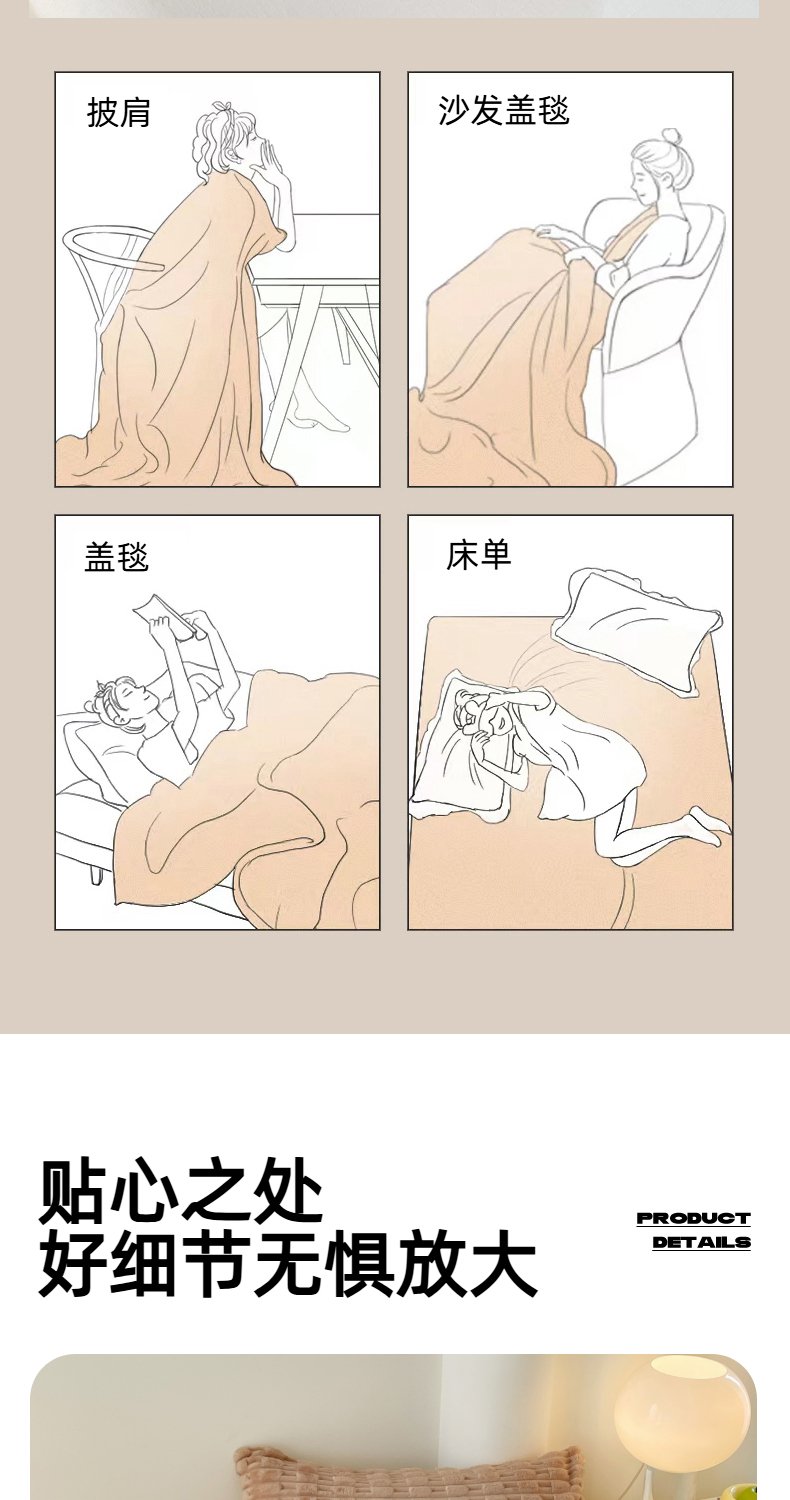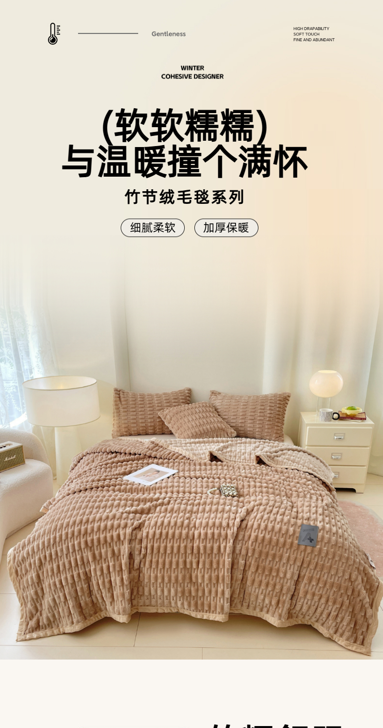 (总)楼兰公主 2025新款竹节绒毛毯,豆沙粉,卡其色,抹茶绿,奶油咖,深灰色,烟雾蓝,组合图仅供参考