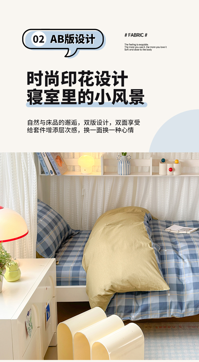 商品名称:拾物记 2025新款A类棉学生印花三件套 方特-蓝