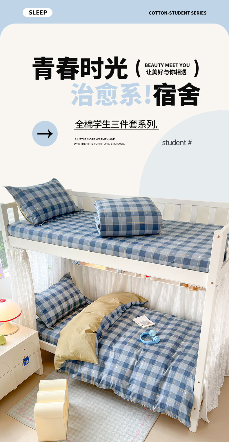 拾物记 2025新款A类棉学生印花三件套 方特-蓝