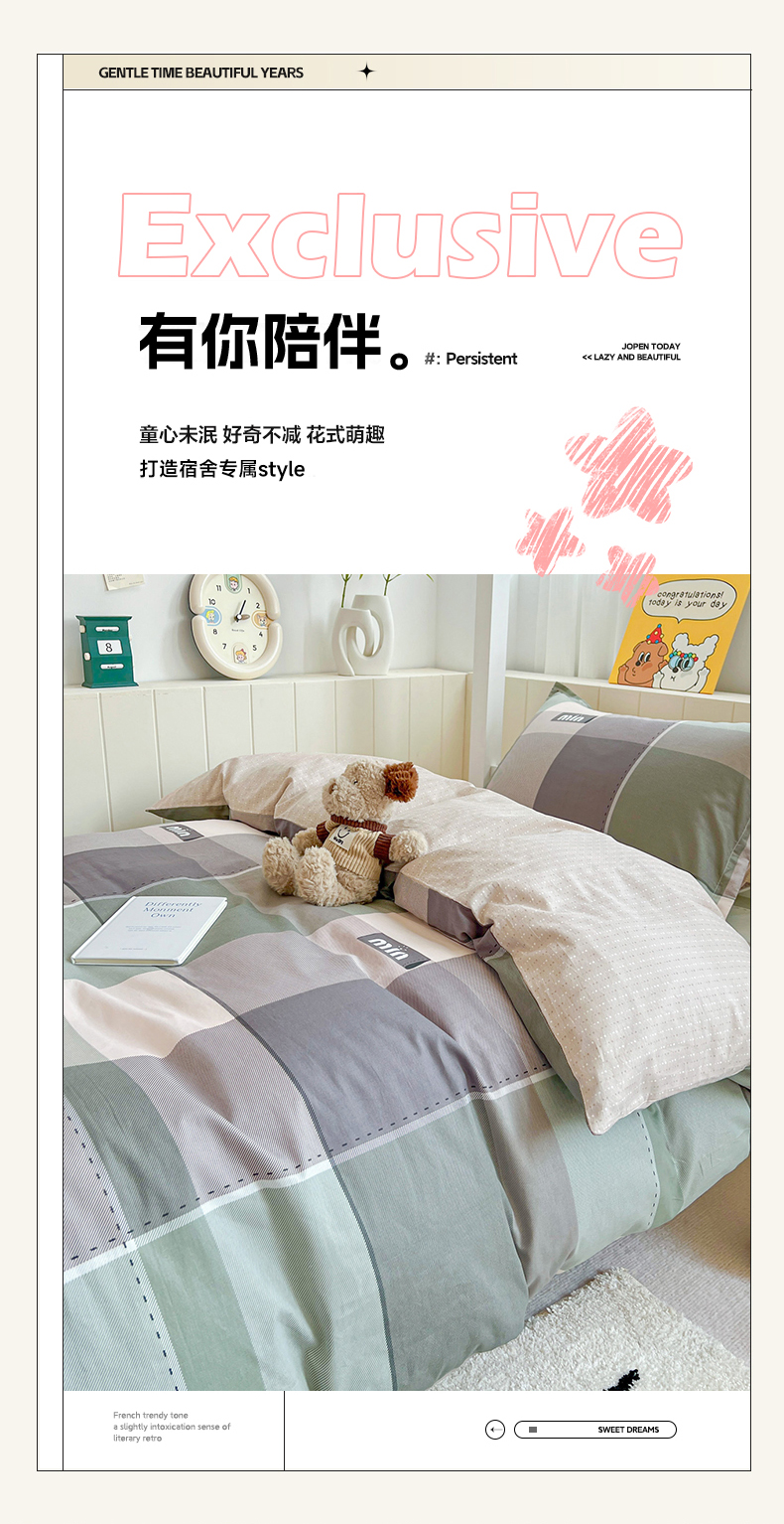 商品名称:春雨家居 2025新款学生季全棉三件套(预留缩水) 6.嘉宇格