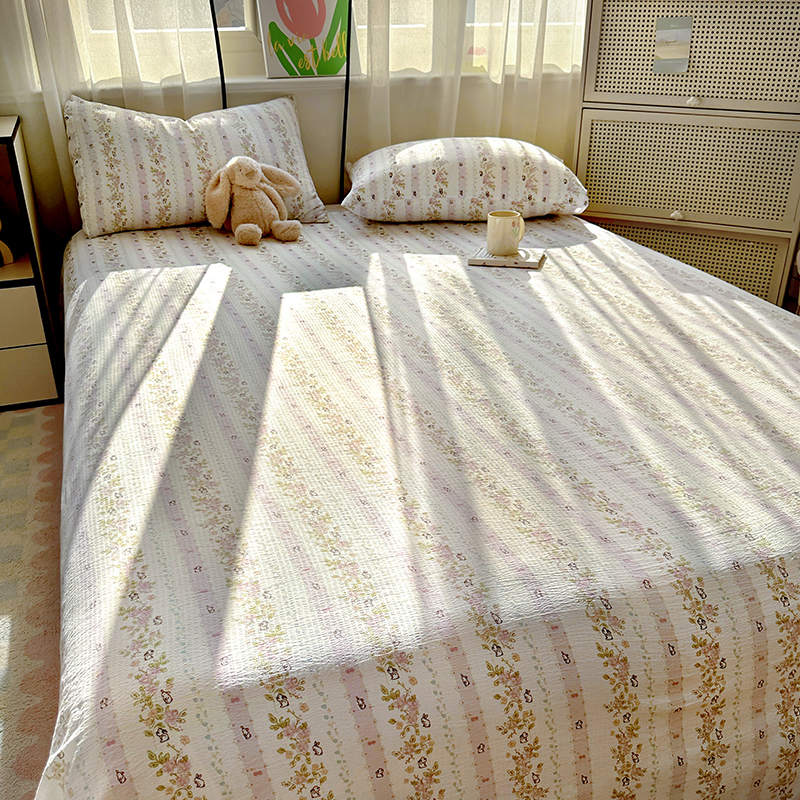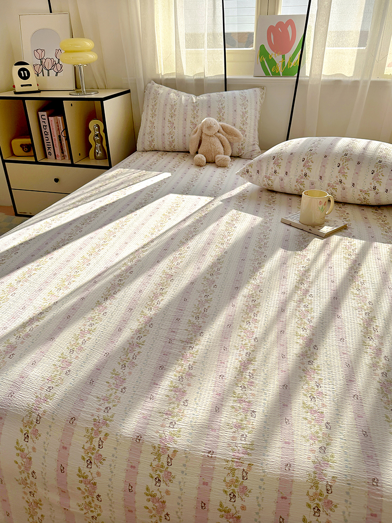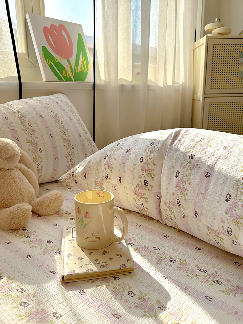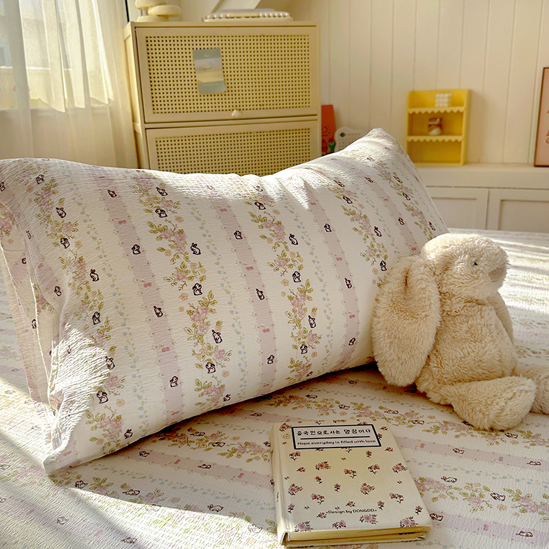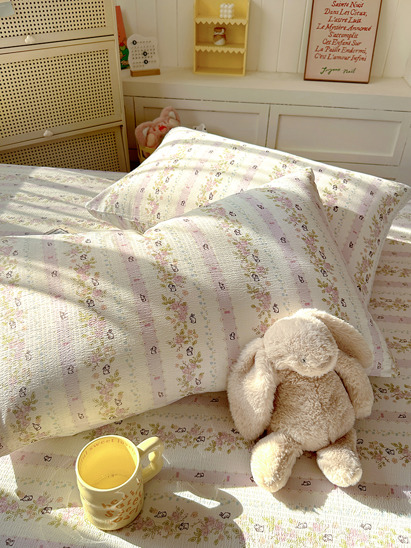 (总)漫仙阁家纺 2025新品云朵棉可爱风卡通烫画单床笠枕套三件套,小浣熊,邻家女孩,小青蛙,兔小姐,花仙子,狗狗家族