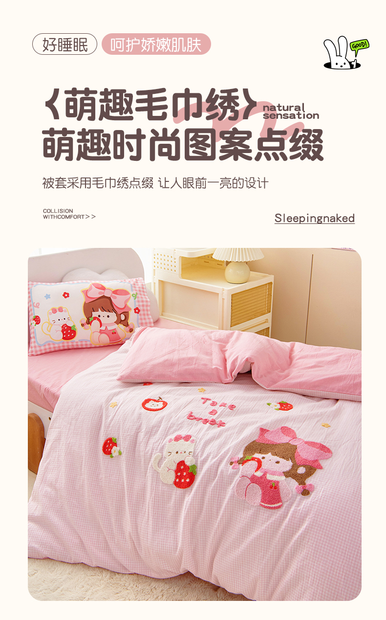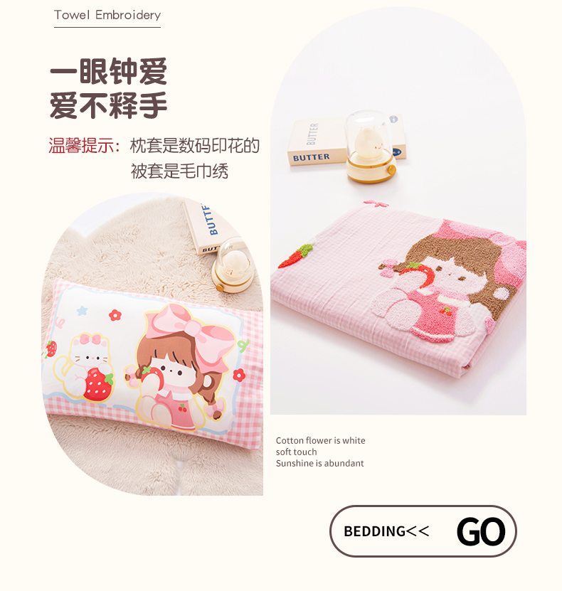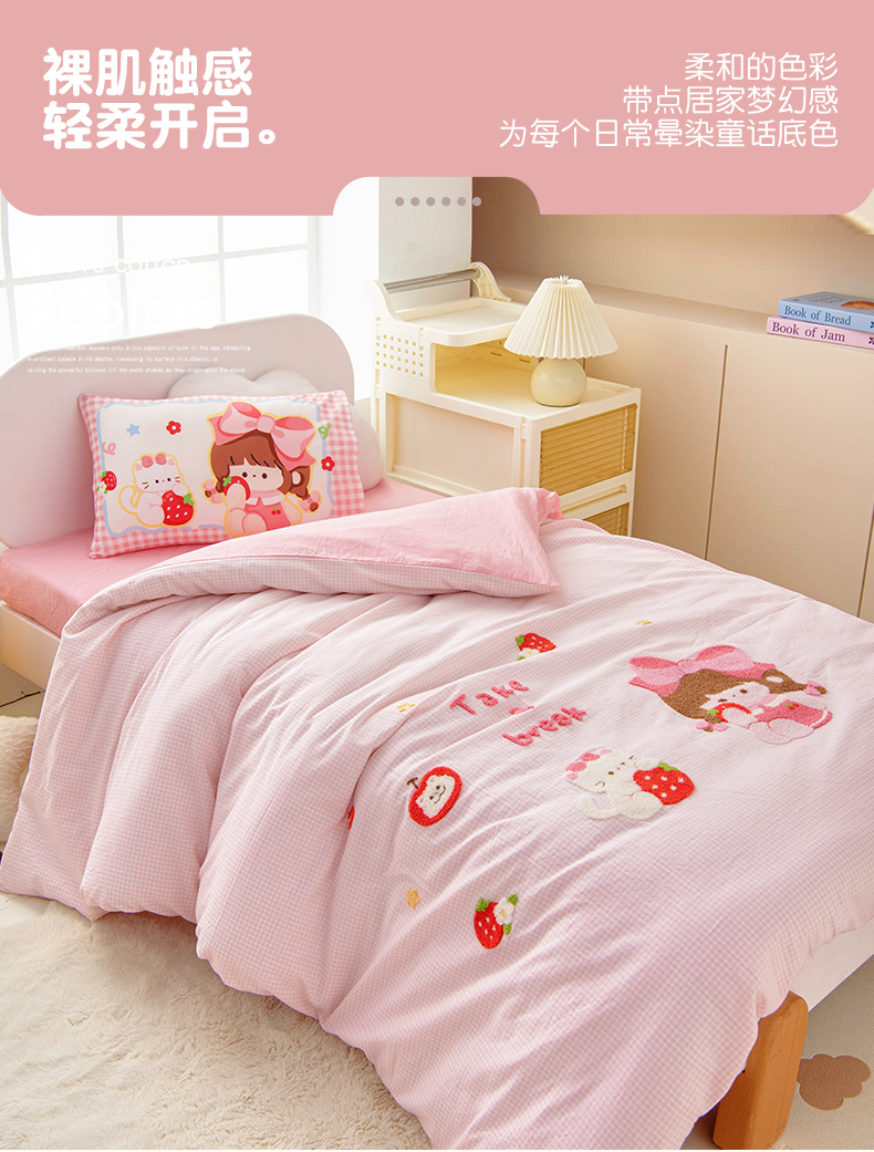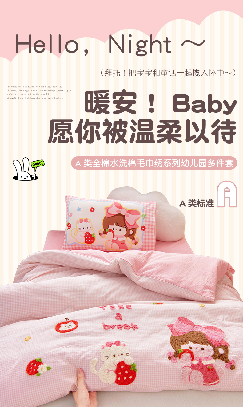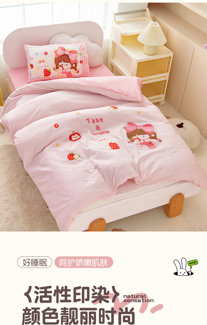 当前位置: 91家纺网 > 商品网购 > 床品套件 > 三件套 > 鱼宝 2025新款全棉毛巾绣幼儿园套件三件套被子被芯 草莓女孩