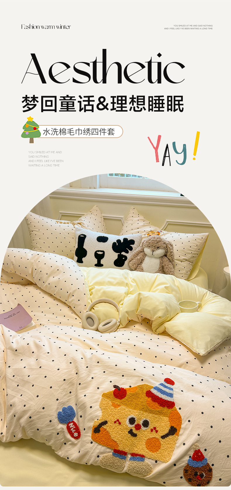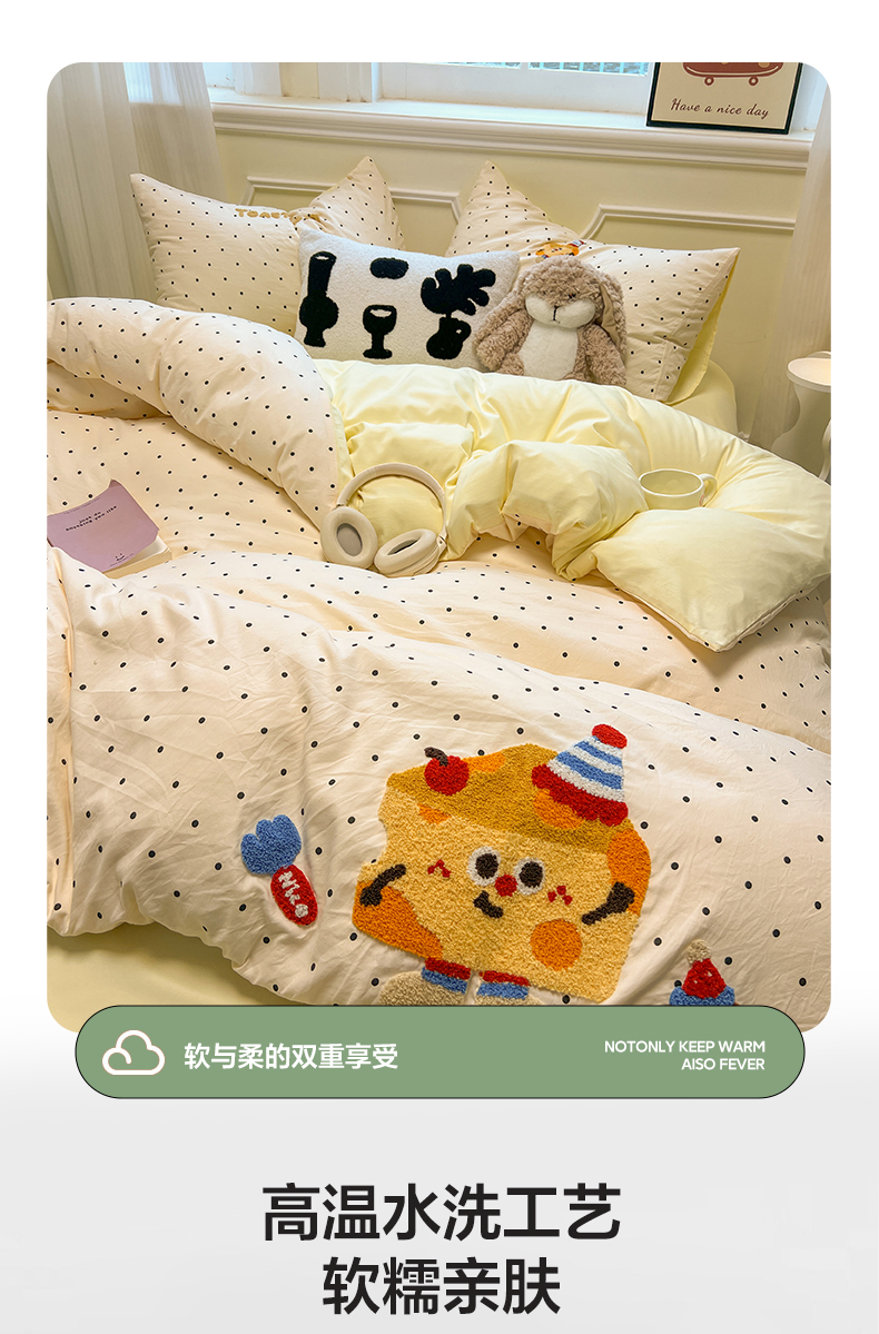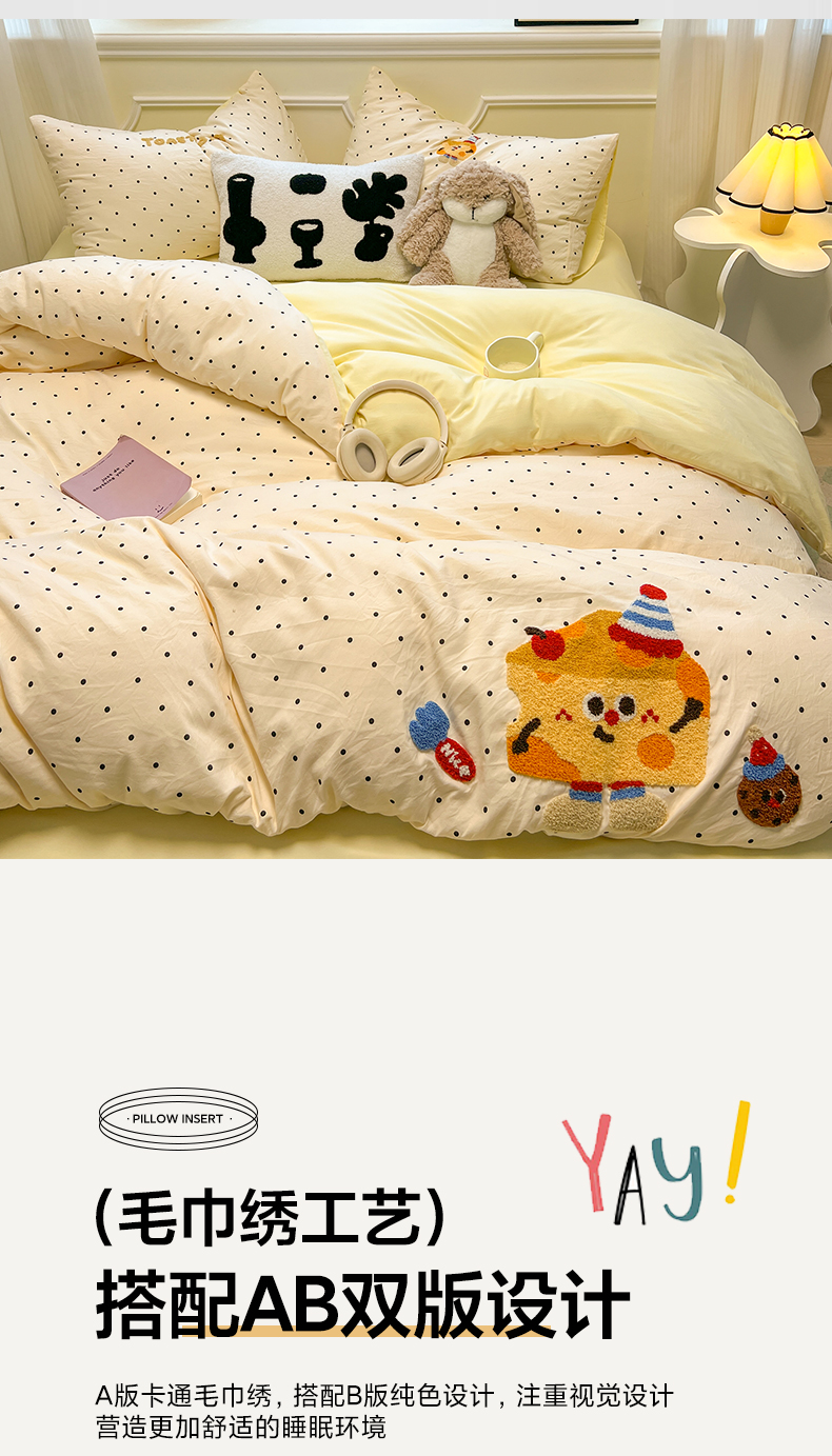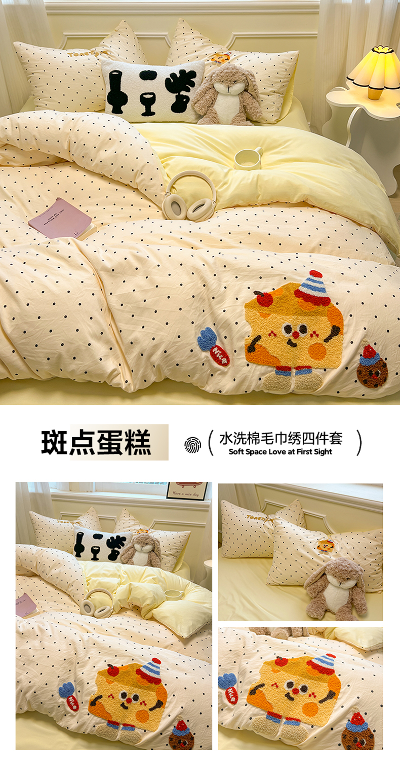 当前位置: 91家纺网 > 商品网购 > 床品套件 > 四件套 > 毛巾绣四件套 > 韩巢家纺 2025新款直播热销款毛巾绣四件套可爱超柔学生季宿舍床上三件套(提供卖家秀) 斑点蛋糕