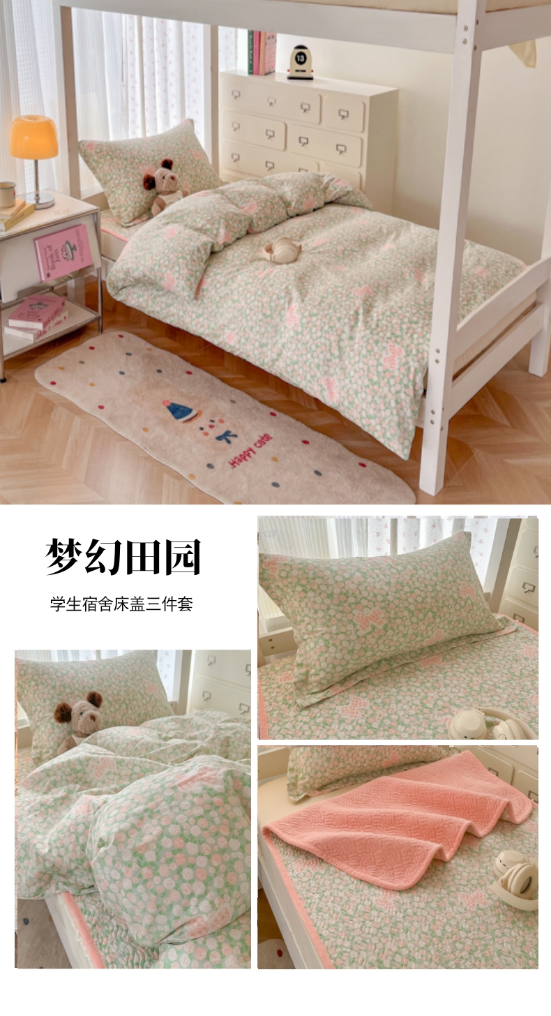 商品名称:慕晨 2025新款全棉学生床盖宿舍印花纯棉床盖三件套AB版皆可用四季通用直播 橘子汽水