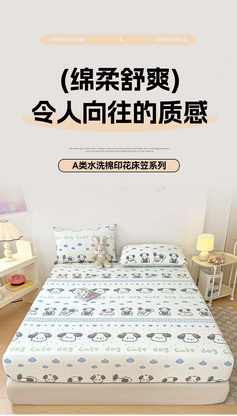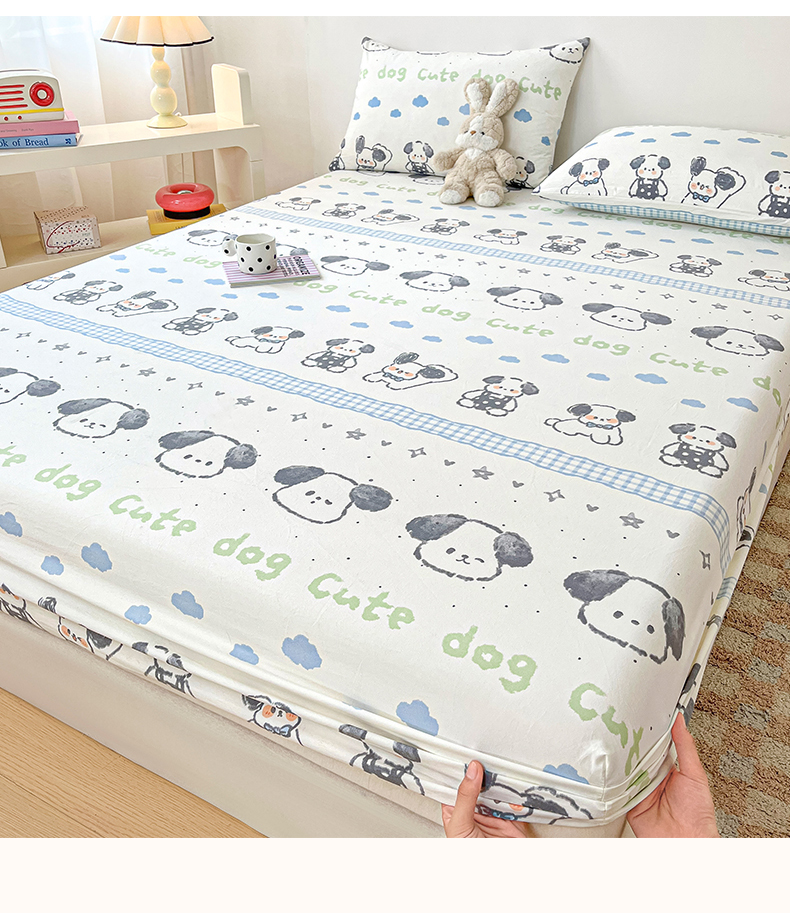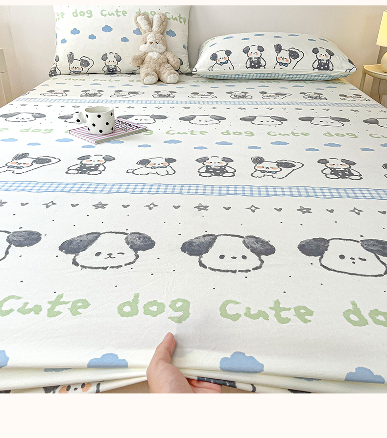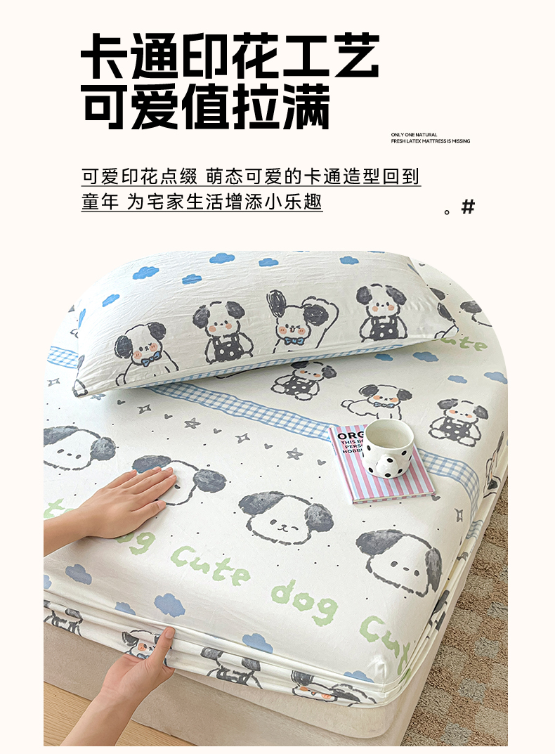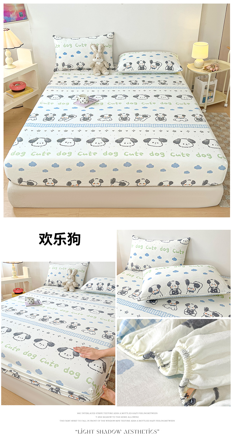 盛秋家纺 2025新款A类水洗棉卡通印花床笠单品床笠单件单床笠 欢乐狗