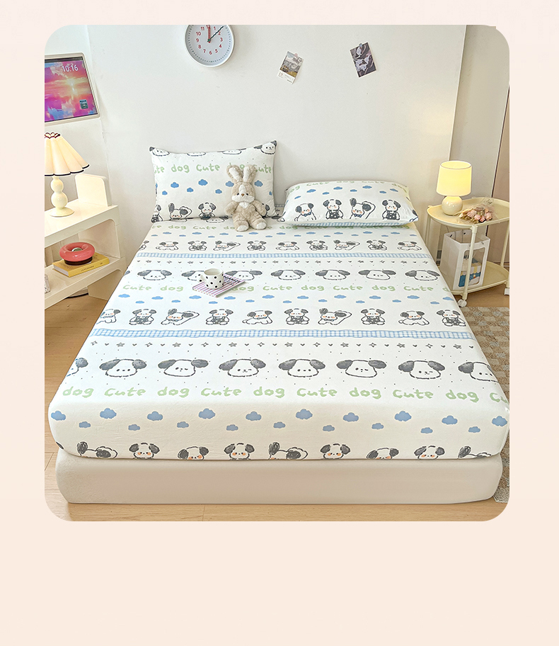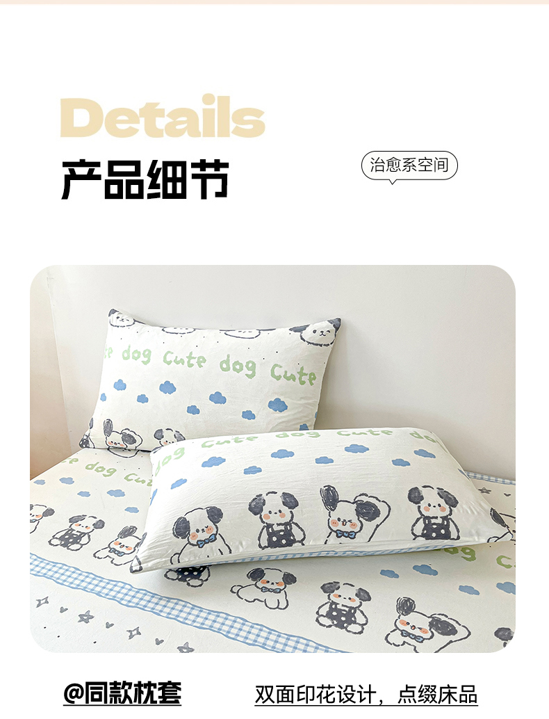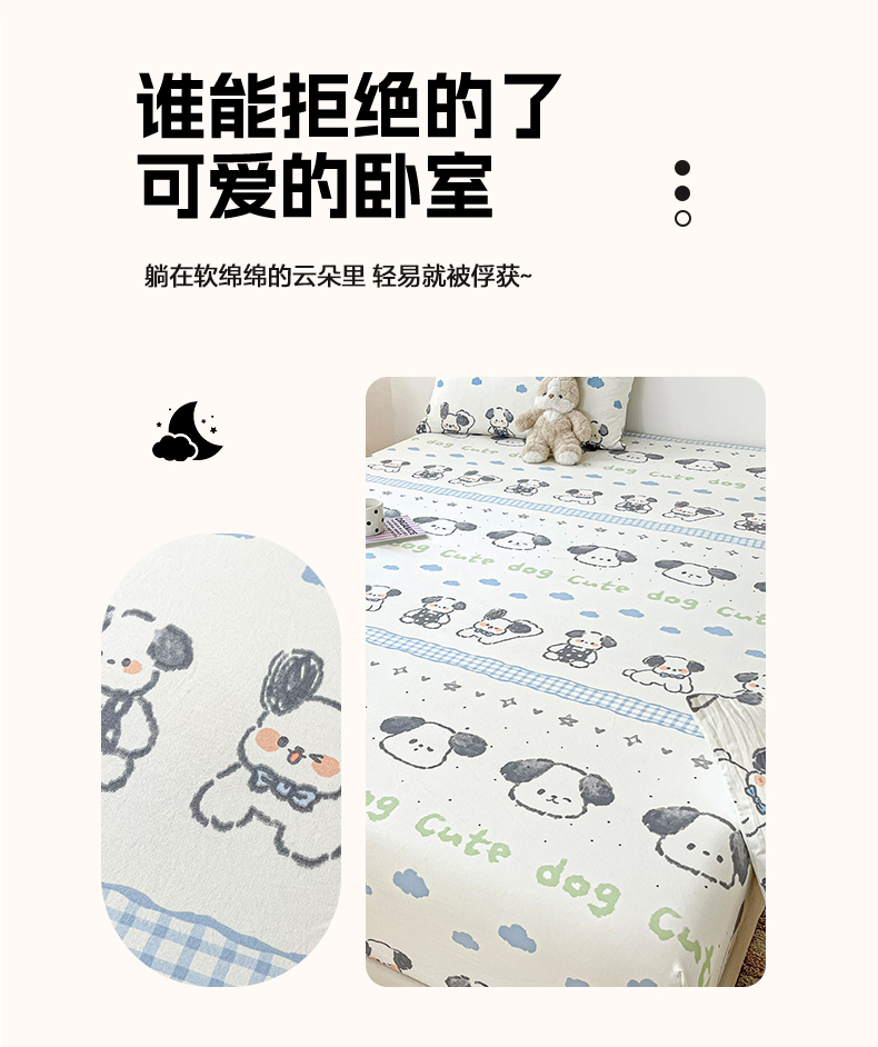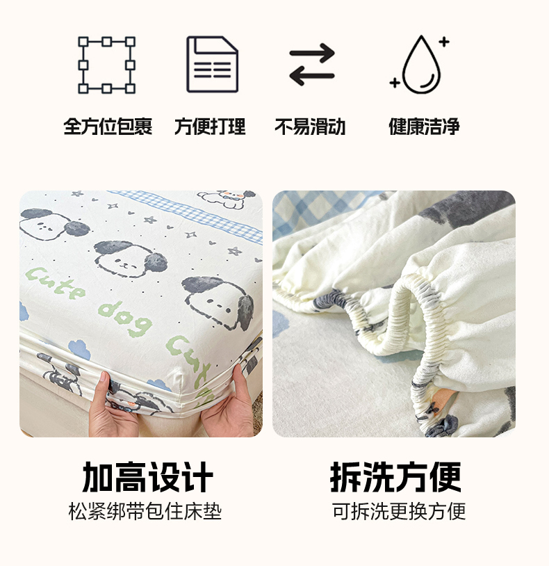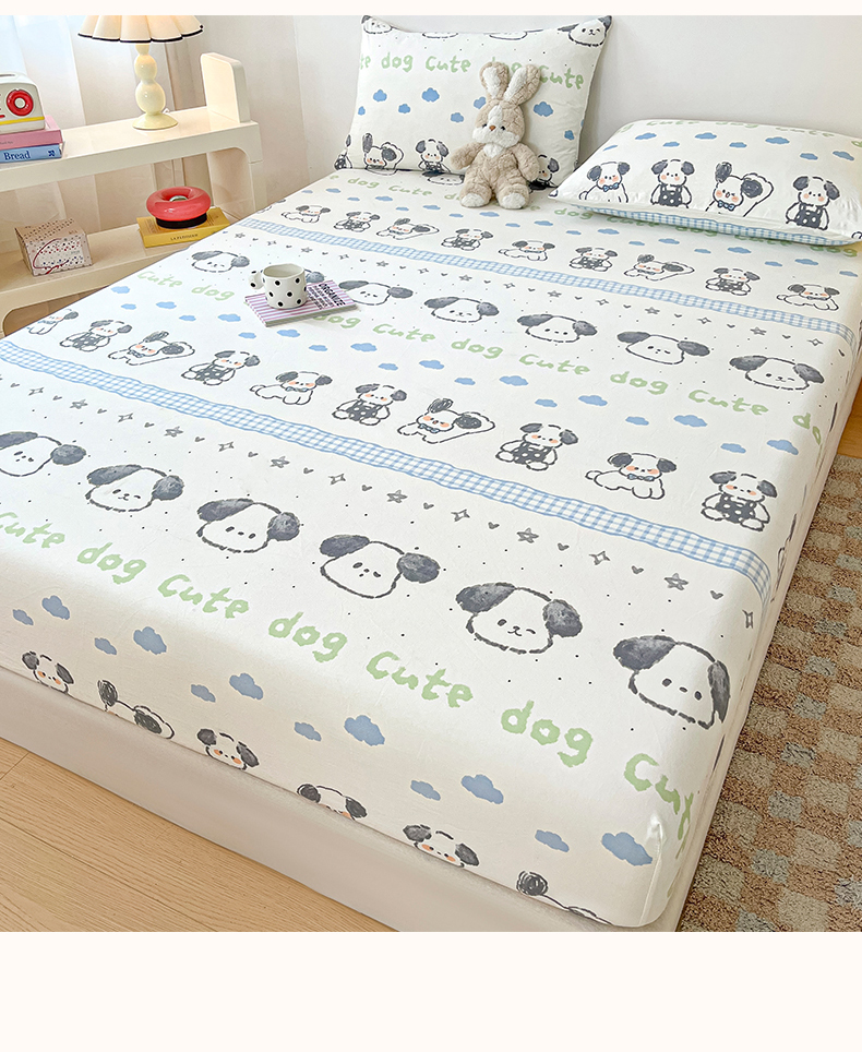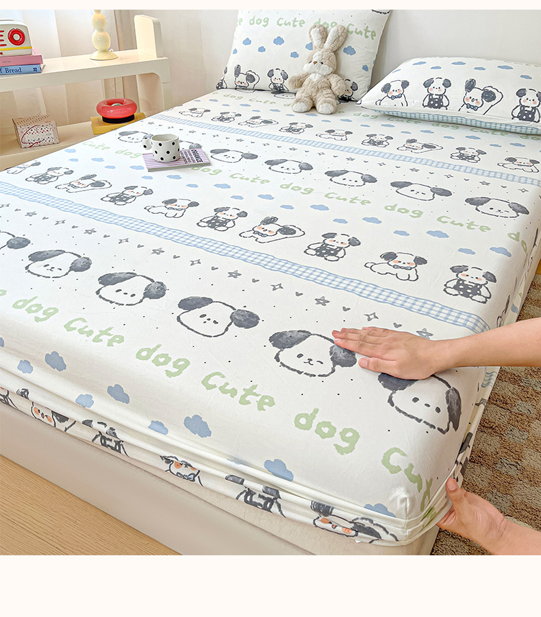 盛秋家纺 2025新款A类水洗棉卡通印花床笠单品床笠单件单床笠 欢乐狗