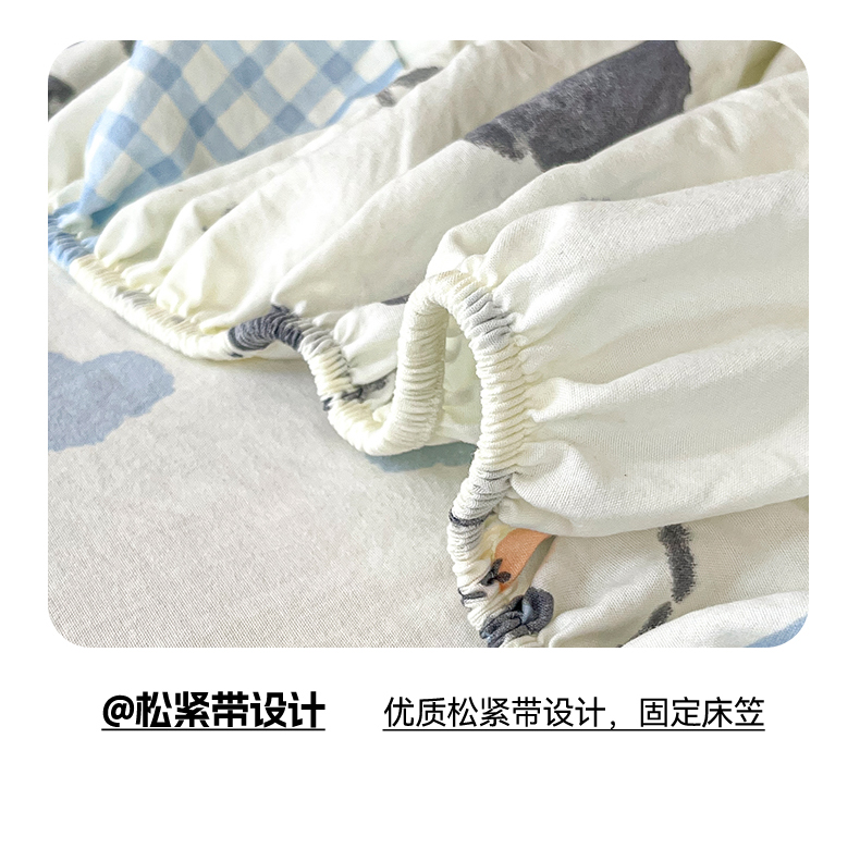 (总)盛秋家纺 2025新款A类水洗棉卡通印花床笠单品床笠单件单床笠,花满天,欢乐狗,开心乐园,开心派对,腊肠狗,铃兰,萌宠乐园,着迷,组合图仅供展示