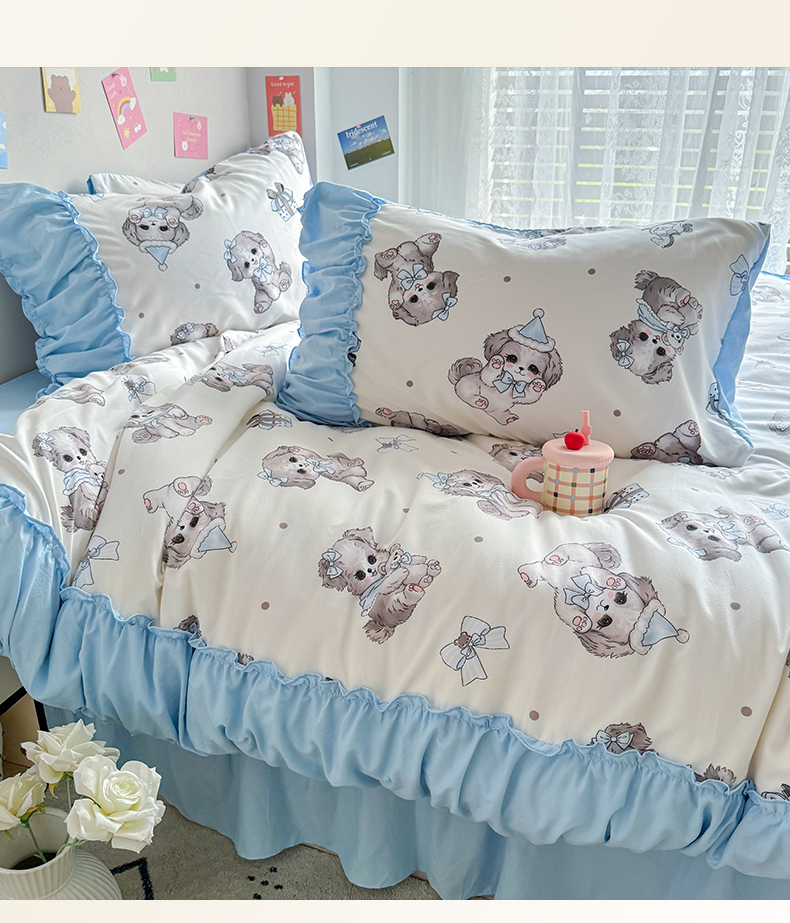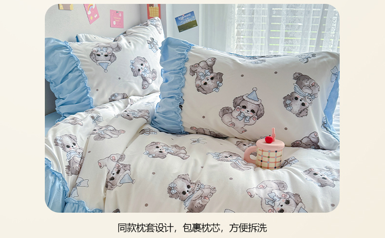 当前位置: 91家纺网 > 商品网购 > 床品套件 > 四件套 > 双层纱四件套 > 优卡迪家纺馆 2025新款A类针织棉有氧双层纱花边款四件套 萌宠