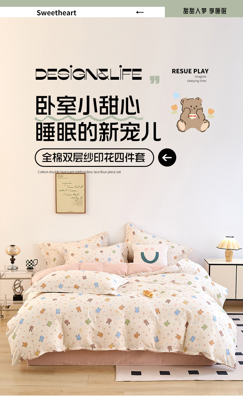 当前位置: 91家纺网 > 商品网购 > 床品套件 > 四件套 > 全棉普通四件套 > 2025新款全棉双层纱印花四件套(第二批)小兔园