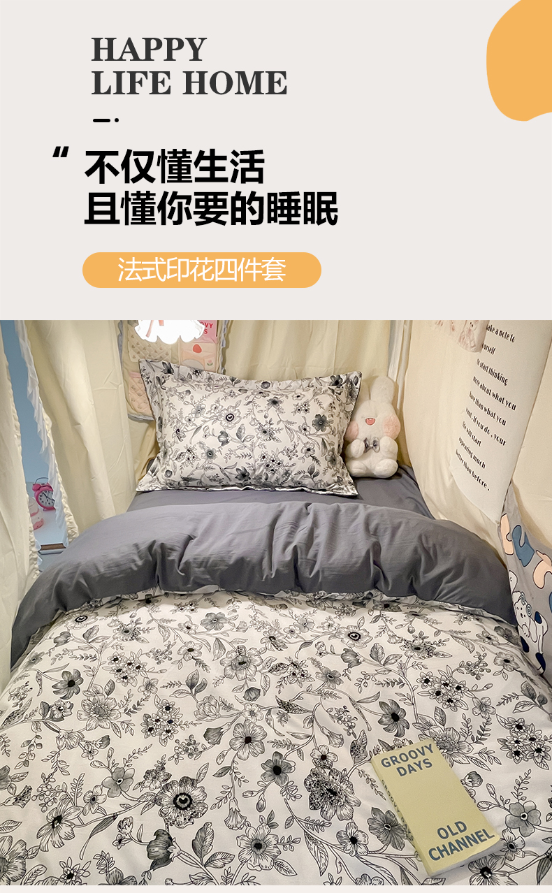 当前位置: 91家纺网 > 商品网购 > 床品套件 > 三件套 > 爱彼家纺 2025新款加厚法式印花学生宿舍三件套上下铺三件套 永墨花园
