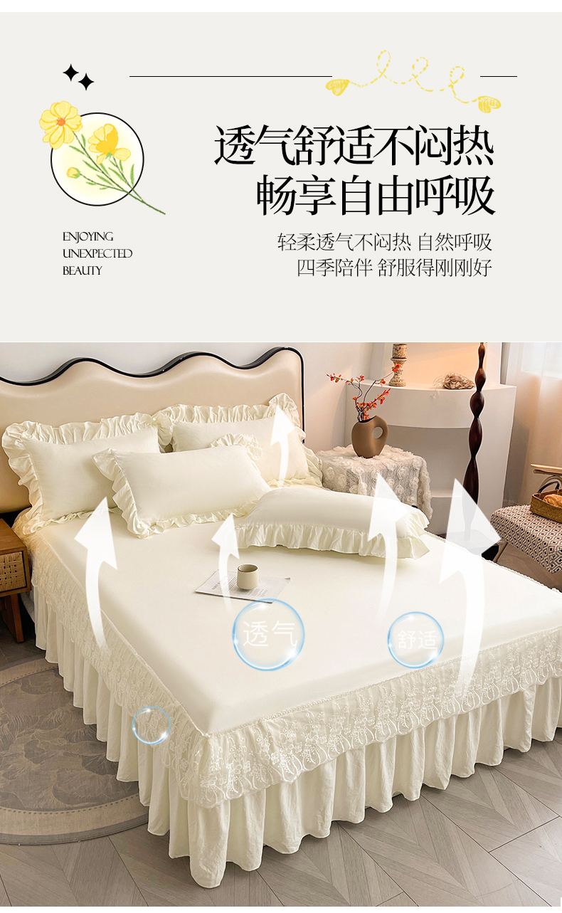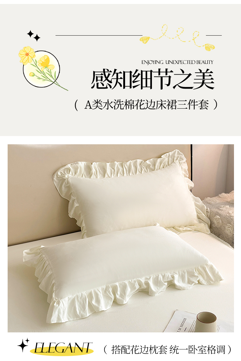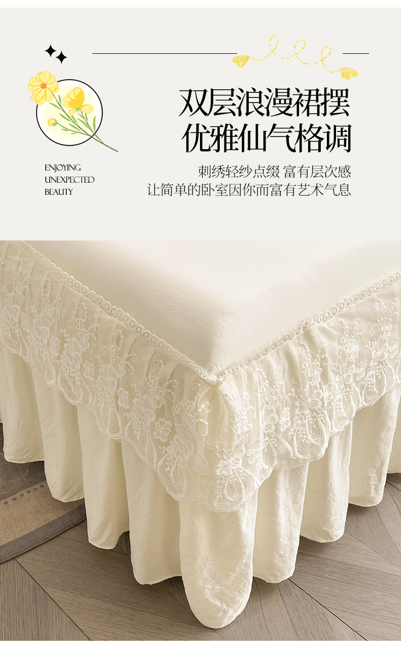 当前位置: 91家纺网 > 商品网购 > 床品套件 > 三件套 > (总)好儿喜家纺 2025新款A类水洗棉花边床裙蕾丝床罩三件套-醉美人