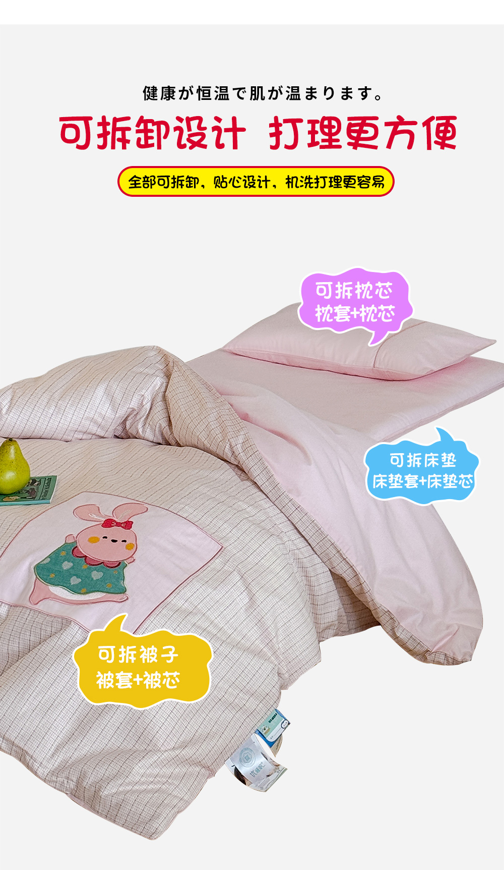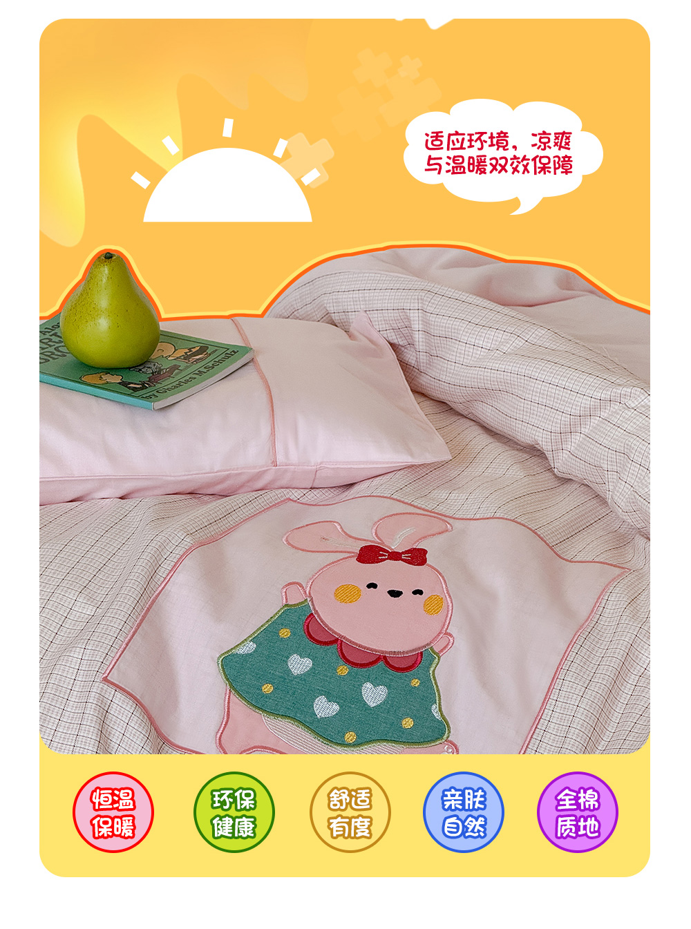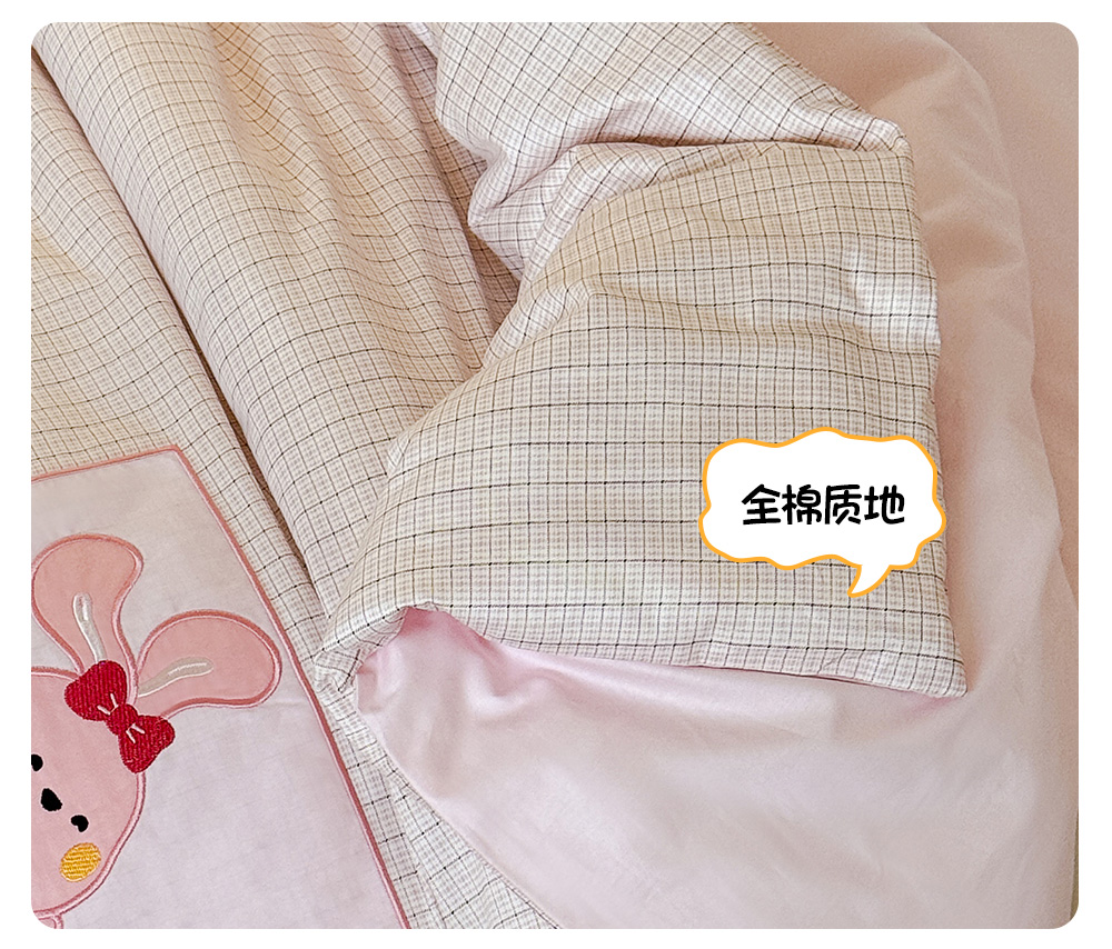当前位置: 91家纺网 > 商品网购 > 床品套件 > 三件套 > 喜多兔儿童家纺 2025新款小美好13372纯棉绣花幼儿园被子三件套多件套 粉色美好小兔子