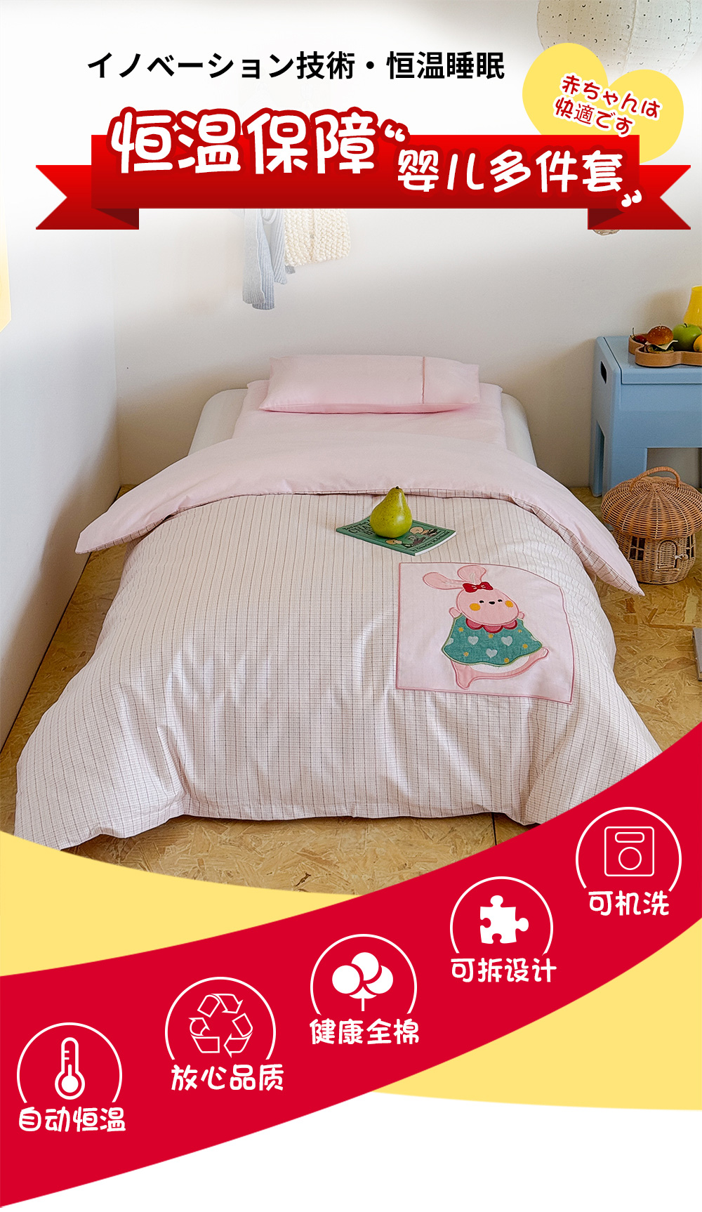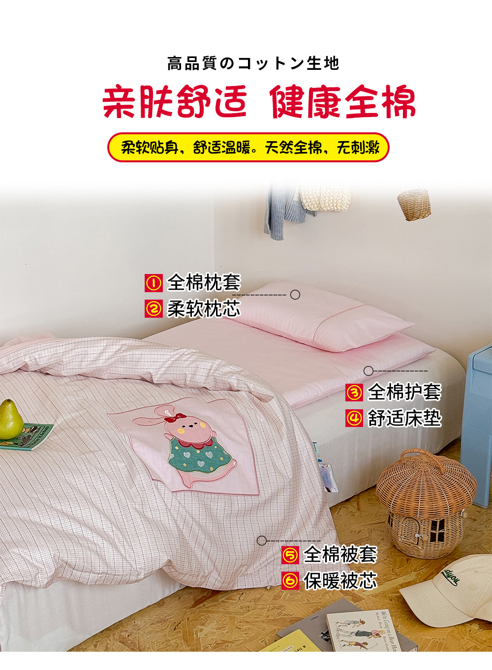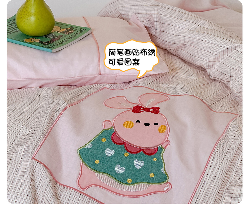 当前位置: 91家纺网 > 商品网购 > 床品套件 > 三件套 > 喜多兔儿童家纺 2025新款小美好13372纯棉绣花幼儿园被子三件套多件套 粉色美好小兔子