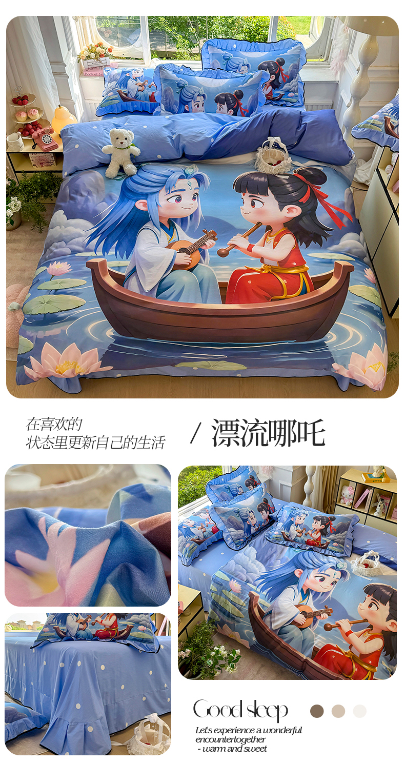 商品名称:馨语家居 2025新款A类全棉3D大版印花四件套 漂流哪吒