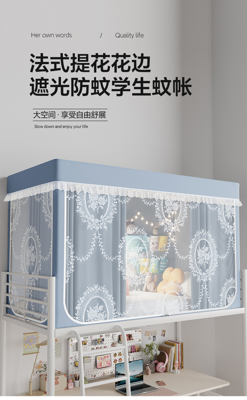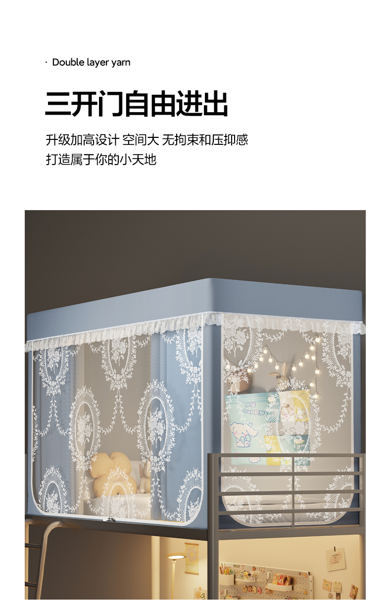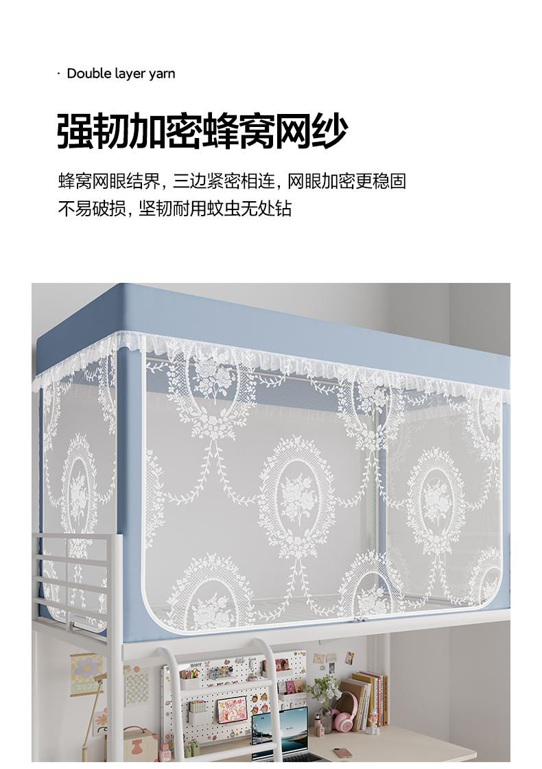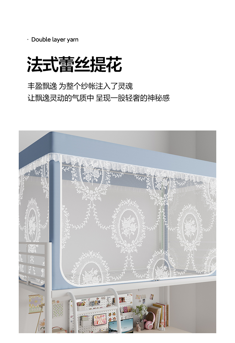 当前位置: 91家纺网 > 商品网购 > 床上用品 > 蚊帐 > 学生蚊帐 > 都市缘蚊帐 2025新款公主风蚊帐学生宿舍一体式床帘全罩式强遮光布上下铺80 90cm 606-baby蓝-薇尔