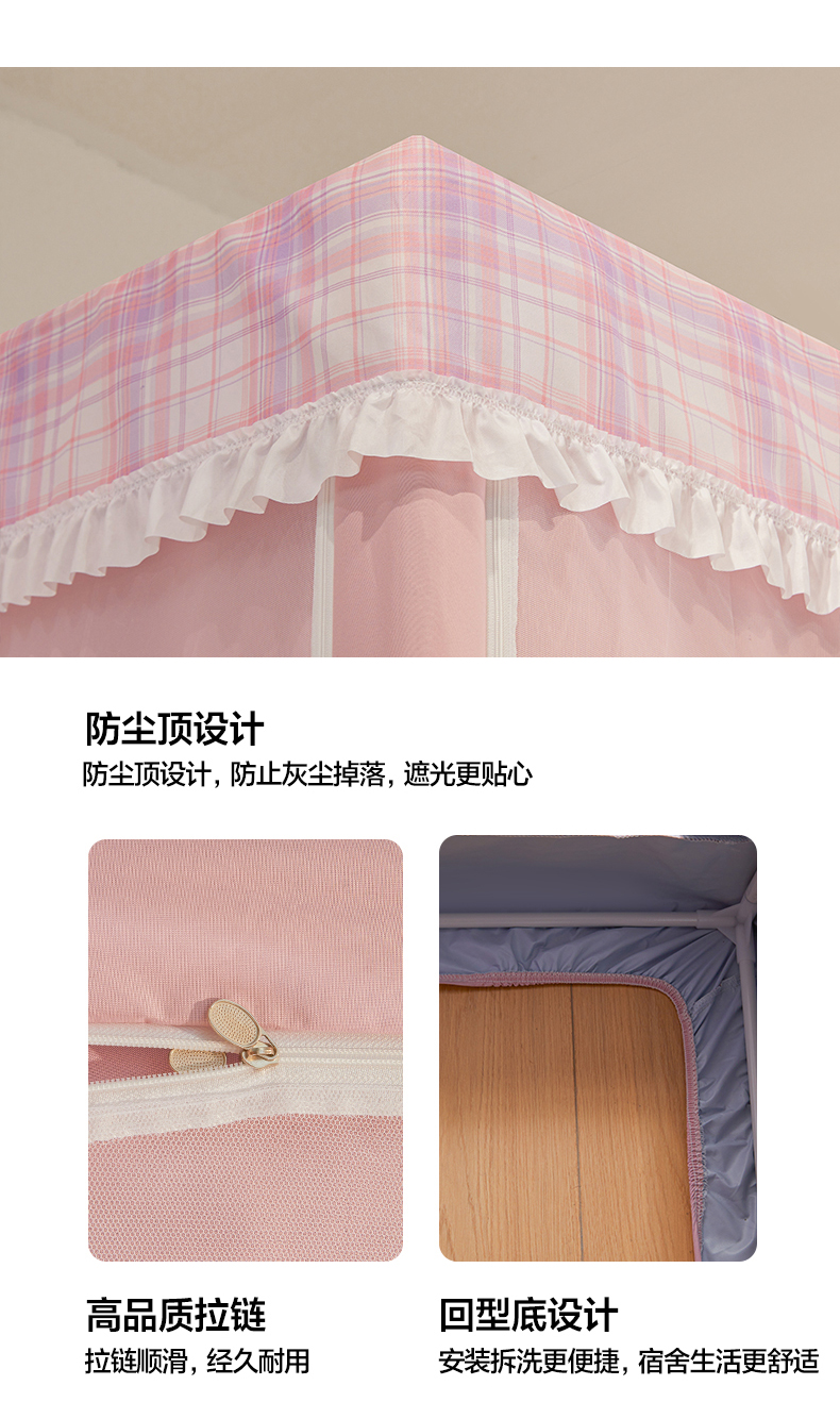当前位置: 91家纺网 > 商品网购 > 床上用品 > 蚊帐 > 学生蚊帐 > 安金蚊帐 2025新款防蚊遮光一体99%强遮光宿舍上下铺遮光学生蚊帐格子花边 小香条格-粉