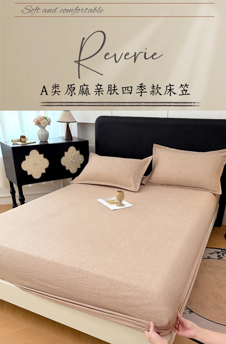 • 91家纺网 家纺一手货源 找家纺 梦舒羽 2025新款原麻床笠机洗家用防滑透气四季款床罩床垫床单保护套 暖卡其