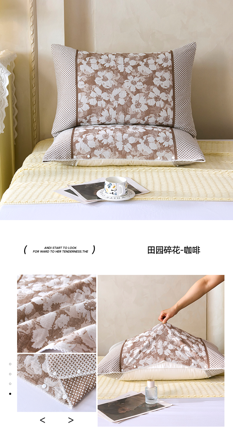 (总)悦然毛巾被 2025新款全棉四层提花纱布美拉德凤格枕套,花蝶红,花蝶咖,花蝶蓝,蔓叶咖,蔓叶蓝,蔓叶棕,玫瑰格调咖,玫瑰格调棕,素布花灰,素布花蓝,野韵,野韵棕,组合
