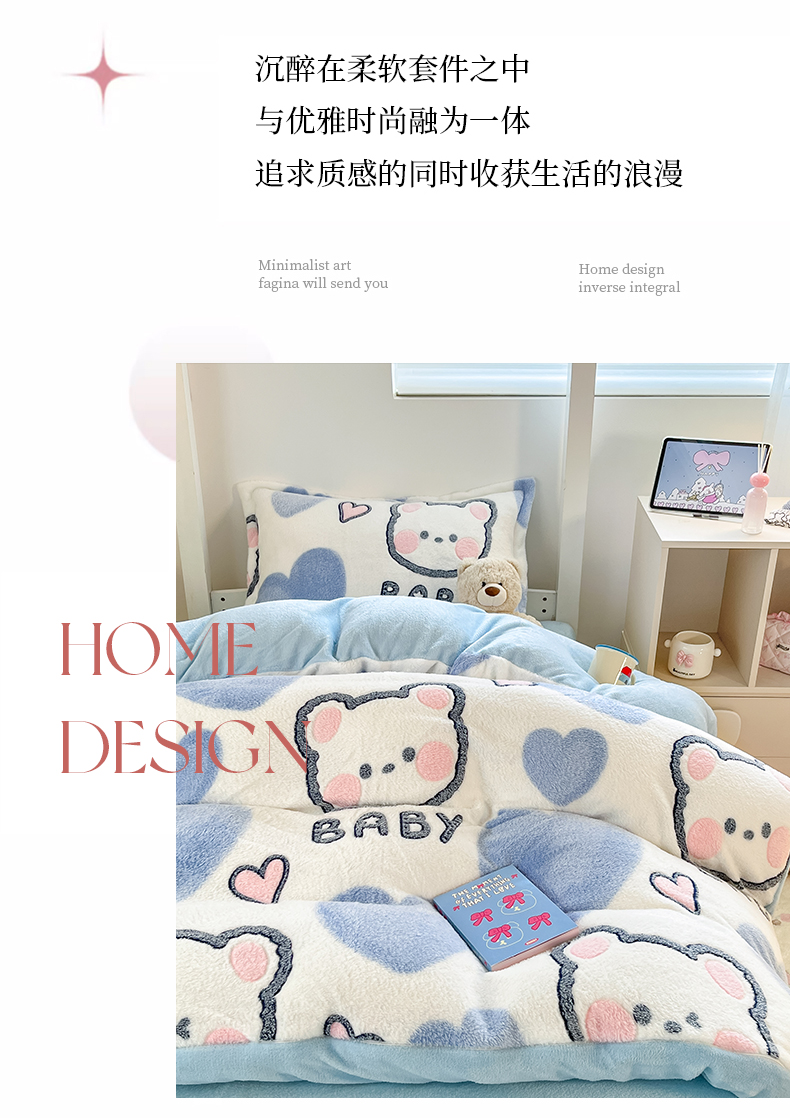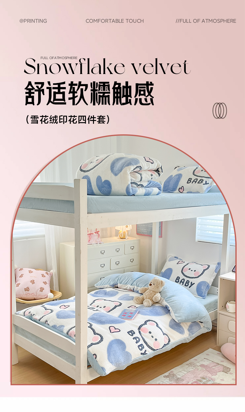 当前位置: 91家纺网 > 商品网购 > 床品套件 > 四件套 > 其它四件套 > 川悦生活 2025新款立体雪花绒印花四件套学生床系列一场景一 可爱熊