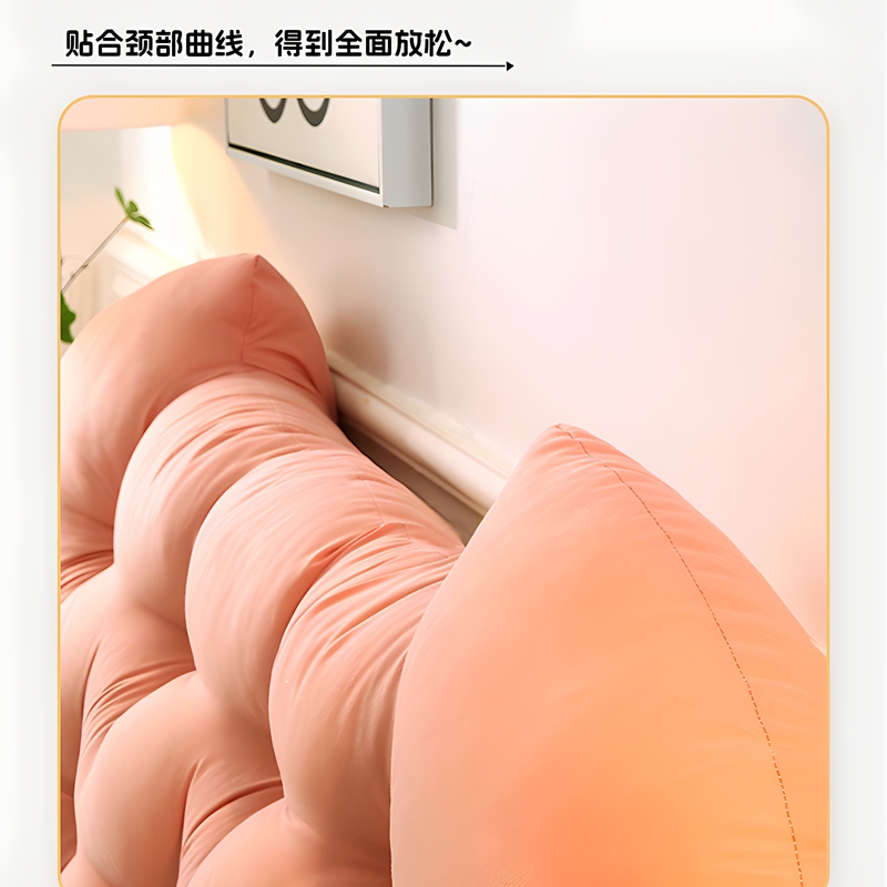 (总)碧尔家居 2025新款荷兰绒弯型三角+头枕床头靠背,奶咖,天蓝,香槟,樱花粉
