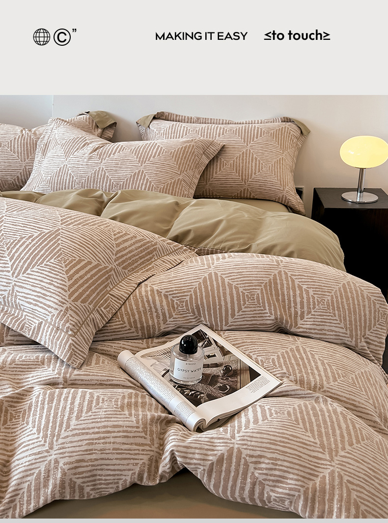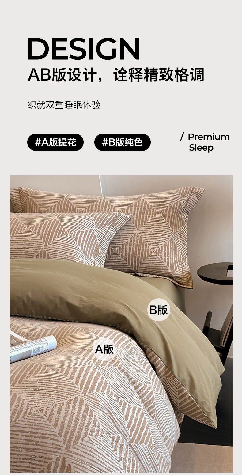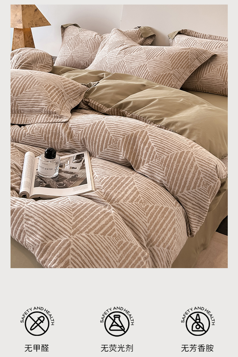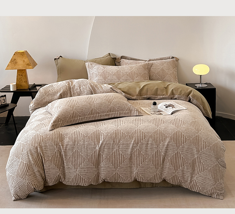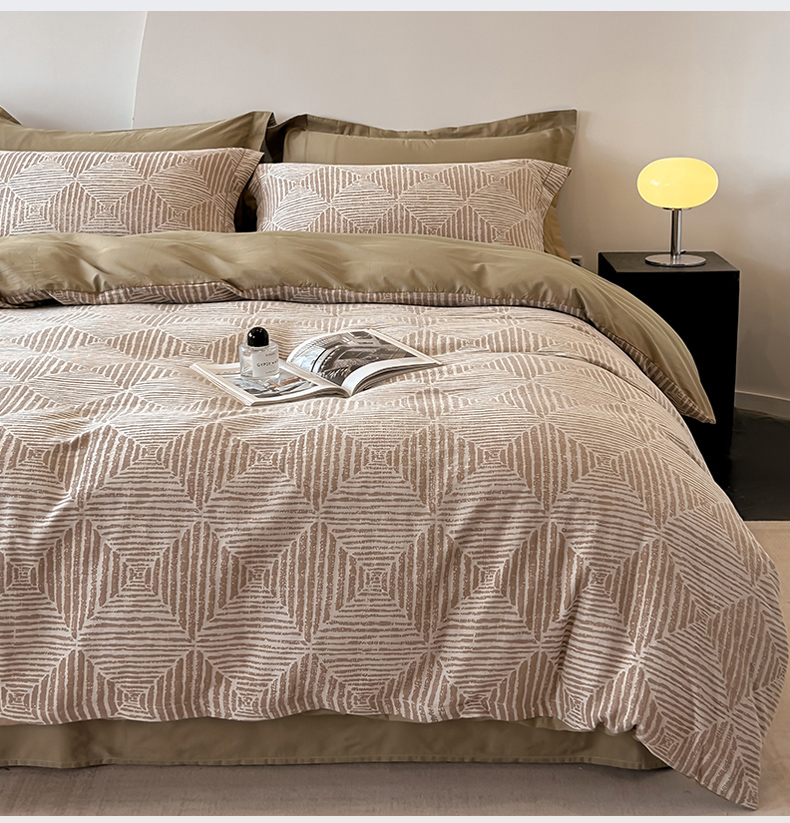 锦彩家居 2025新款A类60支全棉色织提花四件套 几何菱形-咖色