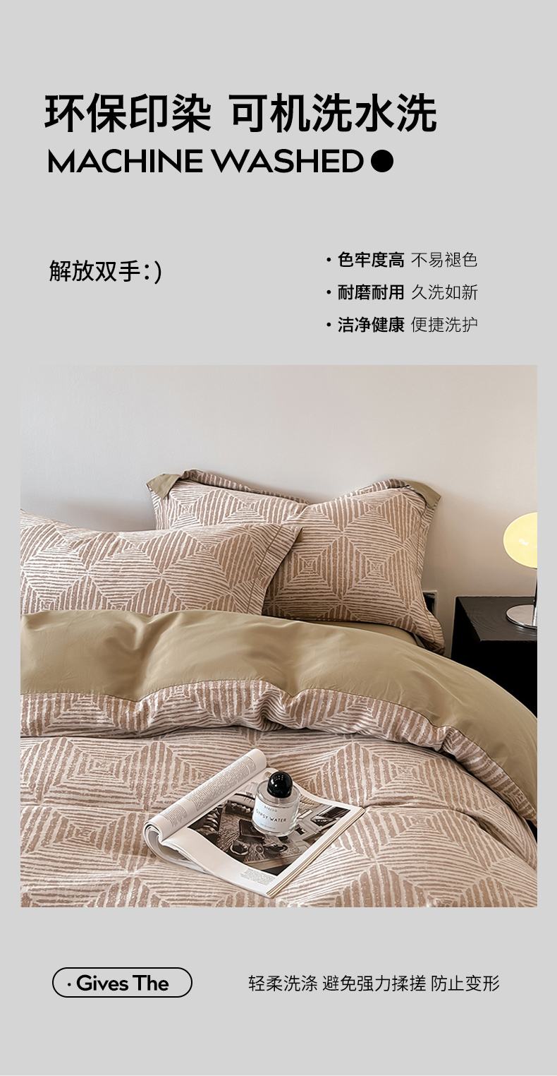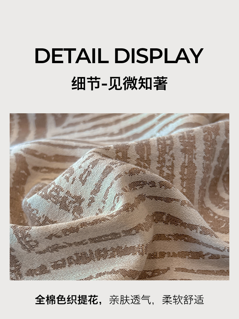 商品名称:锦彩家居 2025新款A类60支全棉色织提花四件套 几何菱形-咖色