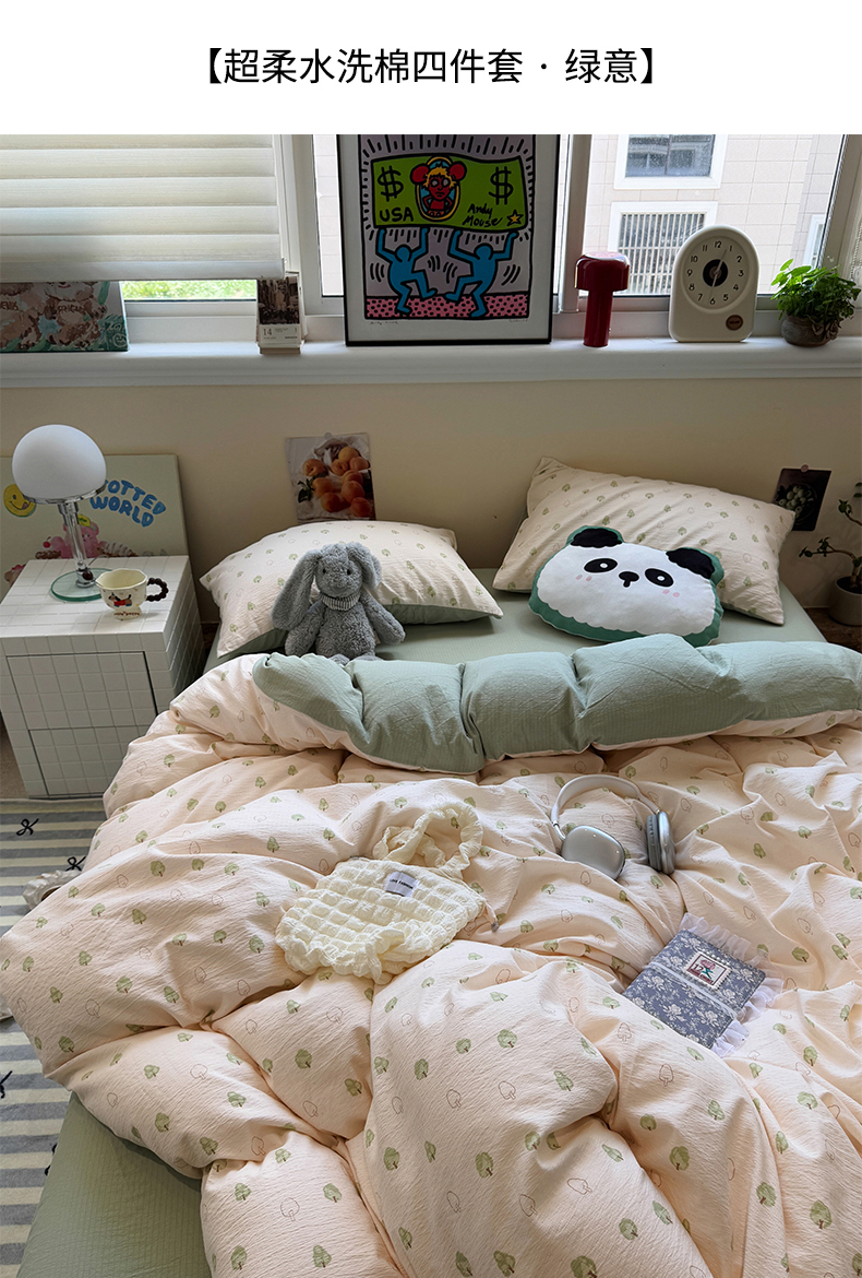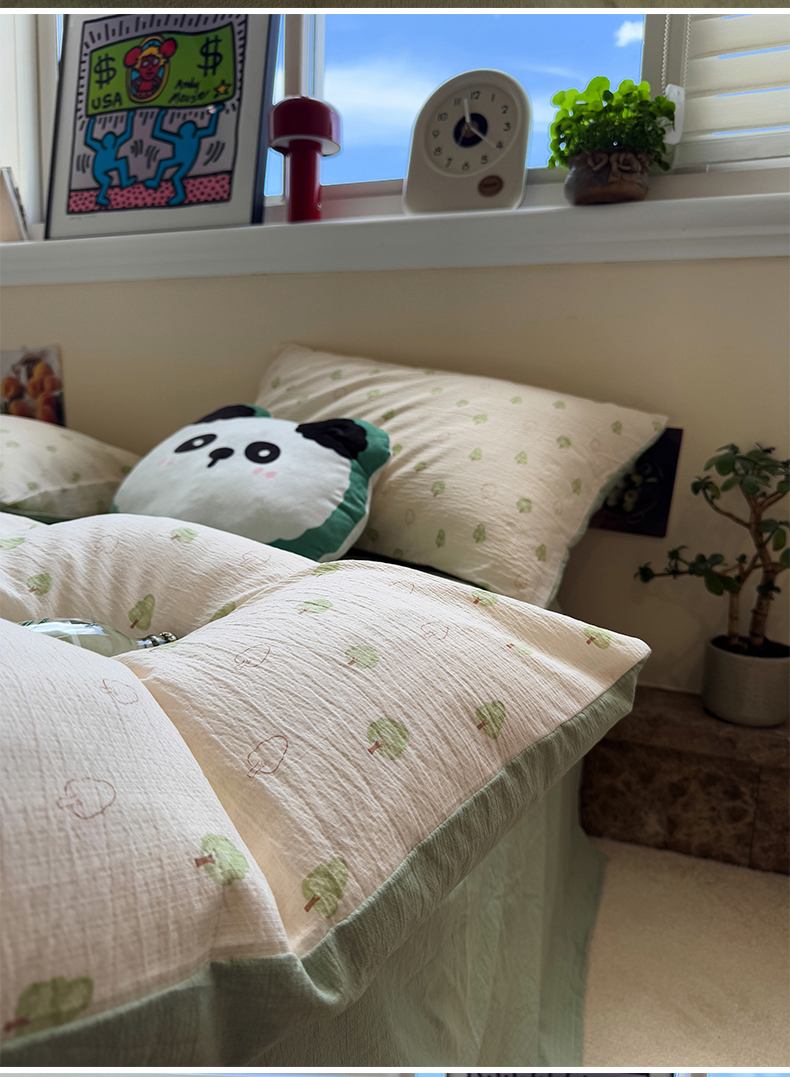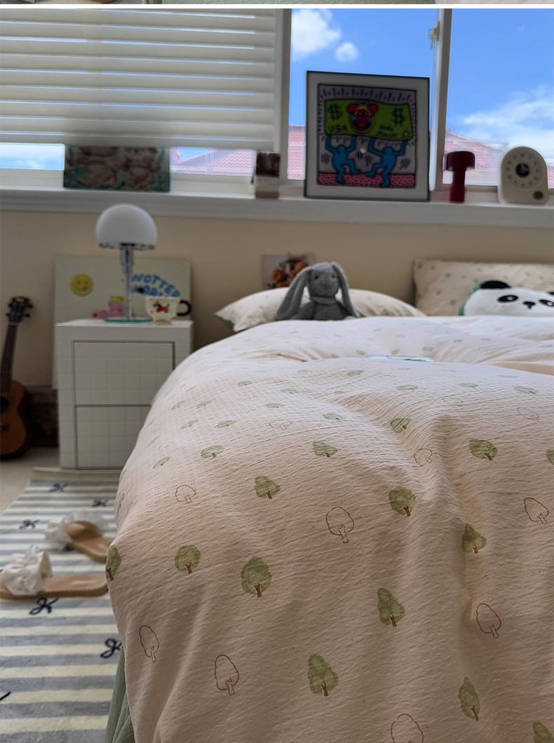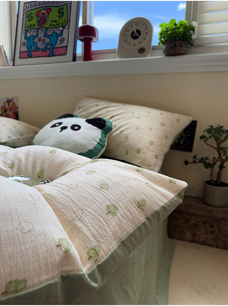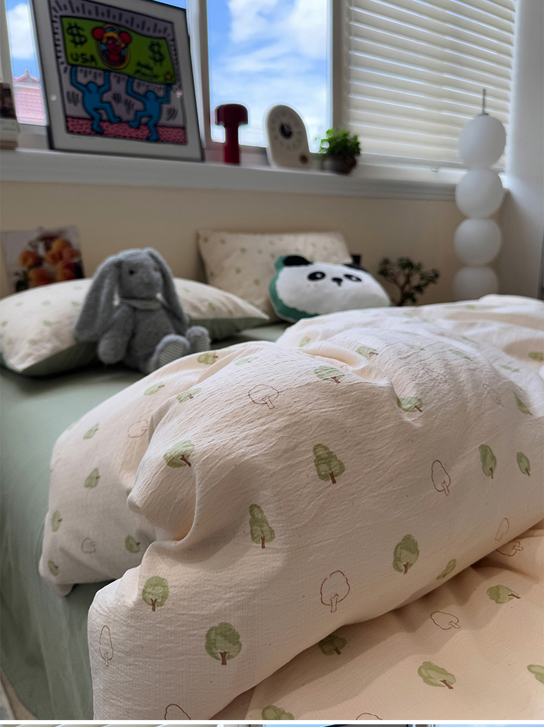 当前位置: 91家纺网 > 商品网购 > 床品套件 > 四件套 > 其它四件套 > 水墨江南 2025新款高克重云感双层纱印花四件套-场景二 绿意