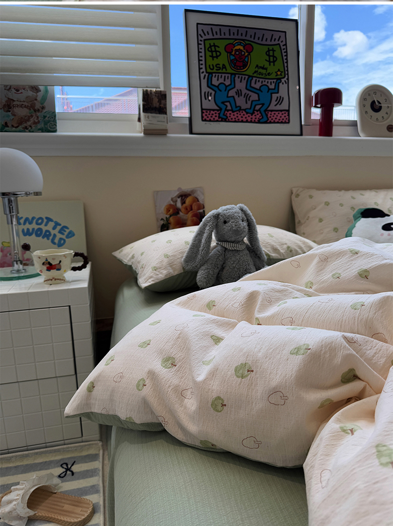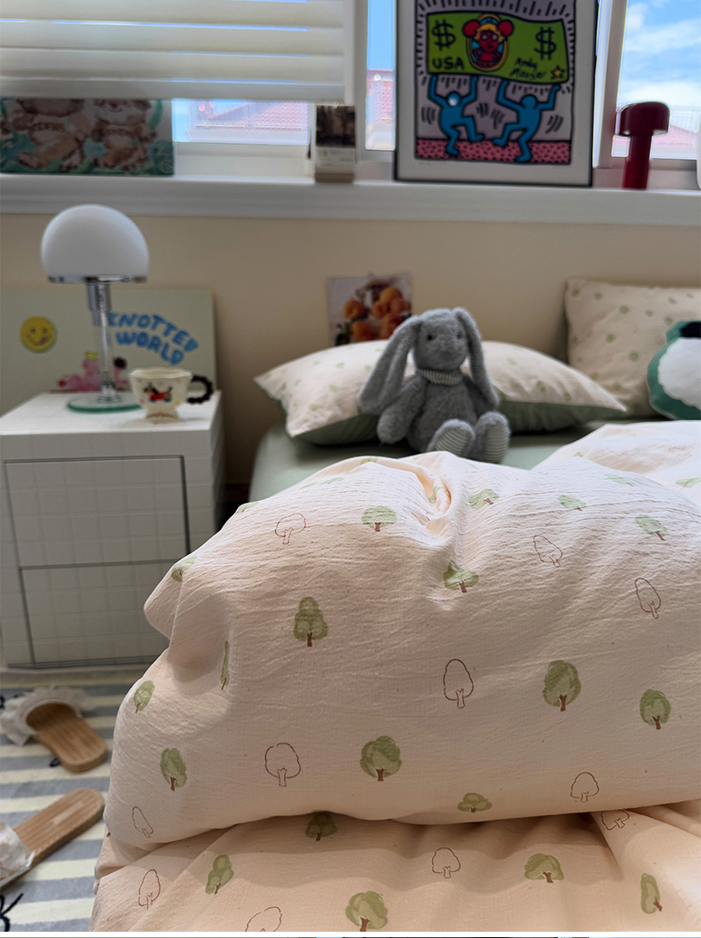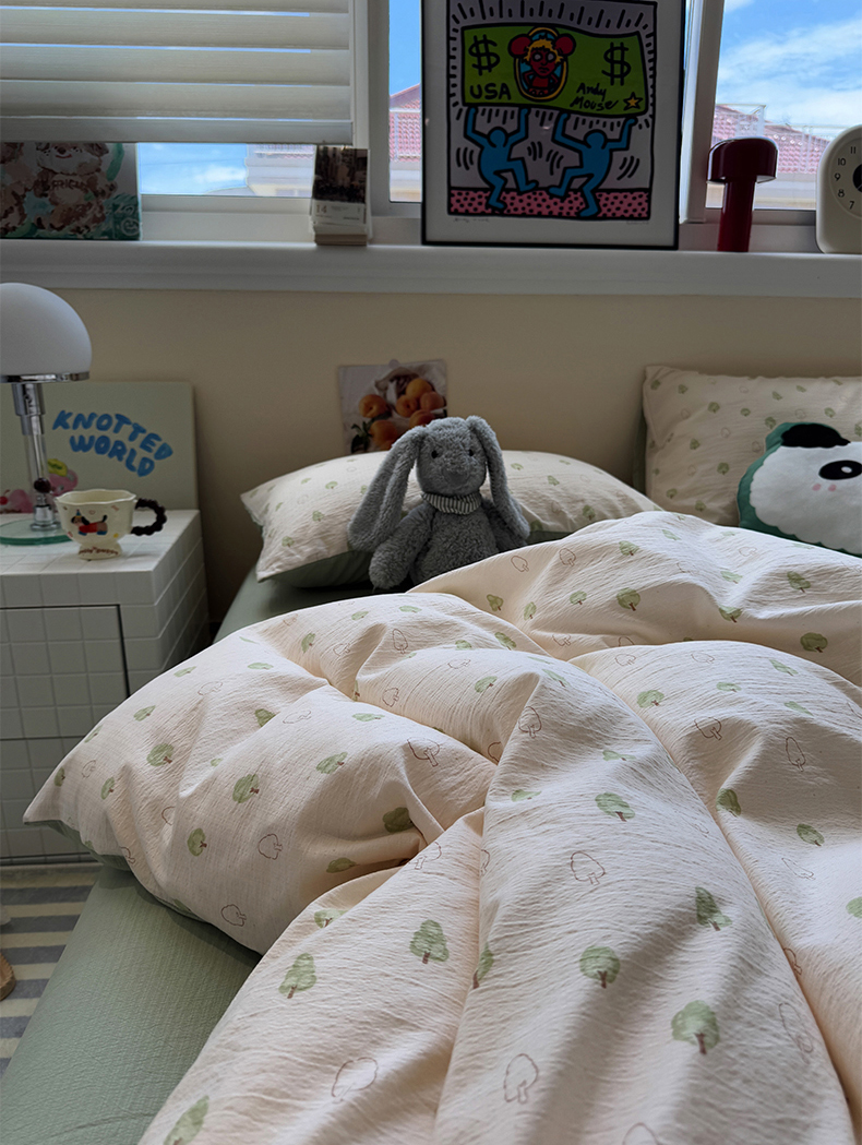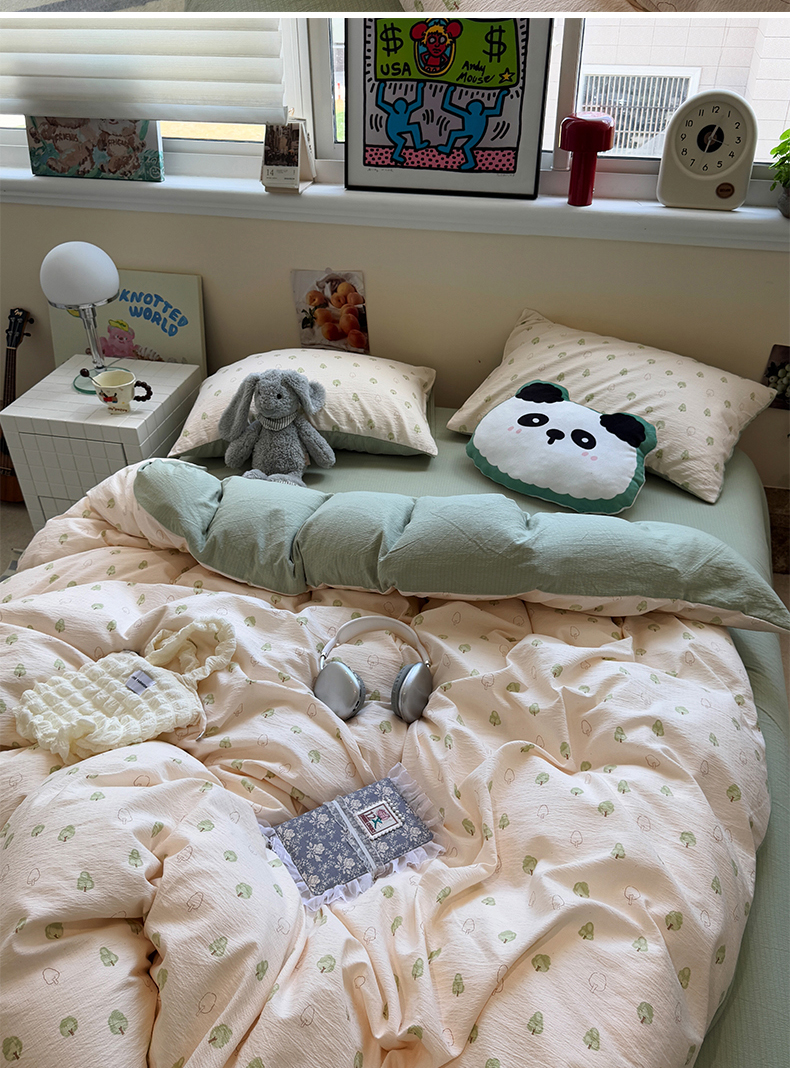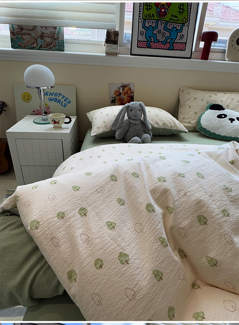 当前位置: 91家纺网 > 商品网购 > 床品套件 > 四件套 > 其它四件套 > 水墨江南 2025新款高克重云感双层纱印花四件套-场景二 绿意