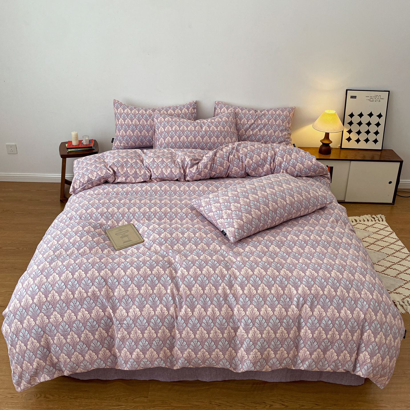 典曼家纺 2025秋冬新款A类高克重亚麻复古诧季风原麻系列四件套 落叶知秋-紫