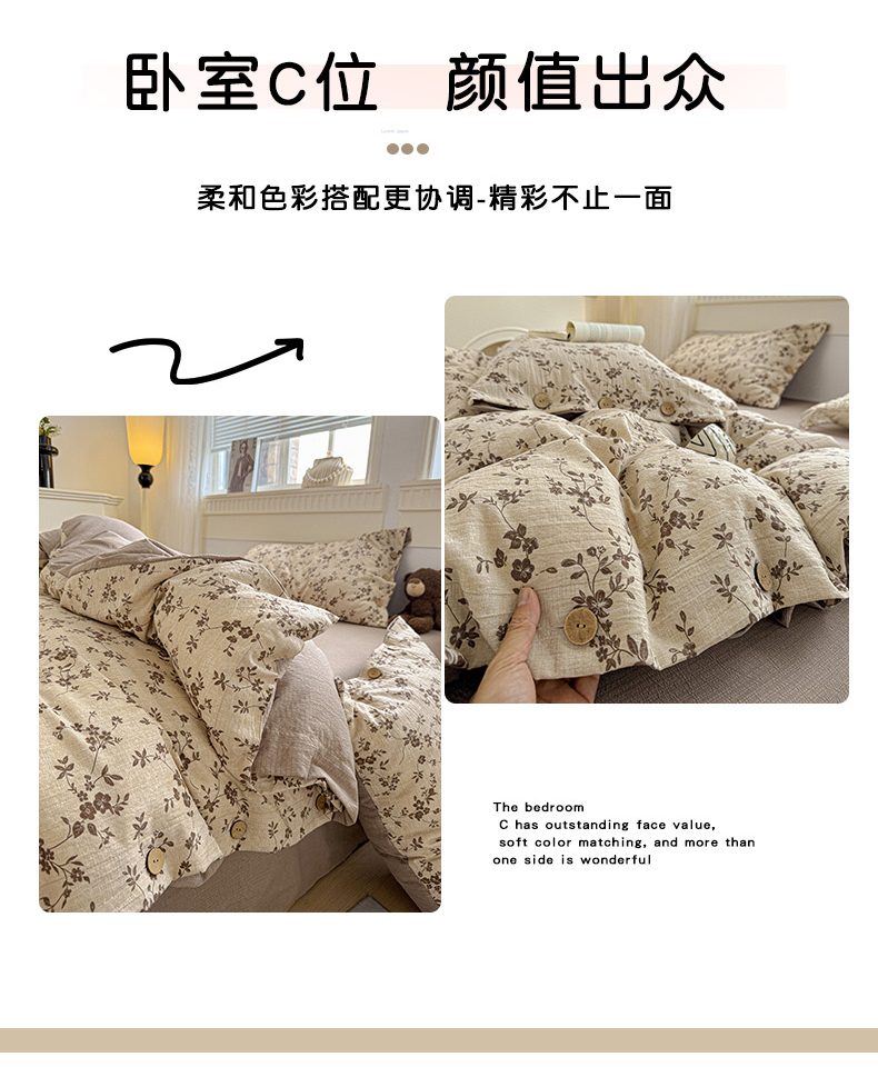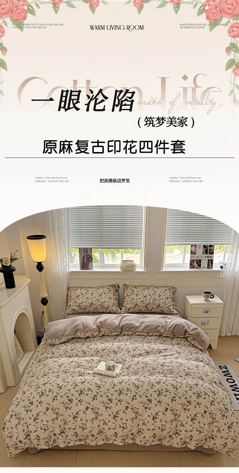 当前位置: 91家纺网 > 商品网购 > 床品套件 > 四件套 > 其它四件套 > 水墨江南 2025新款原麻复古印花纽扣款四件套 暗香