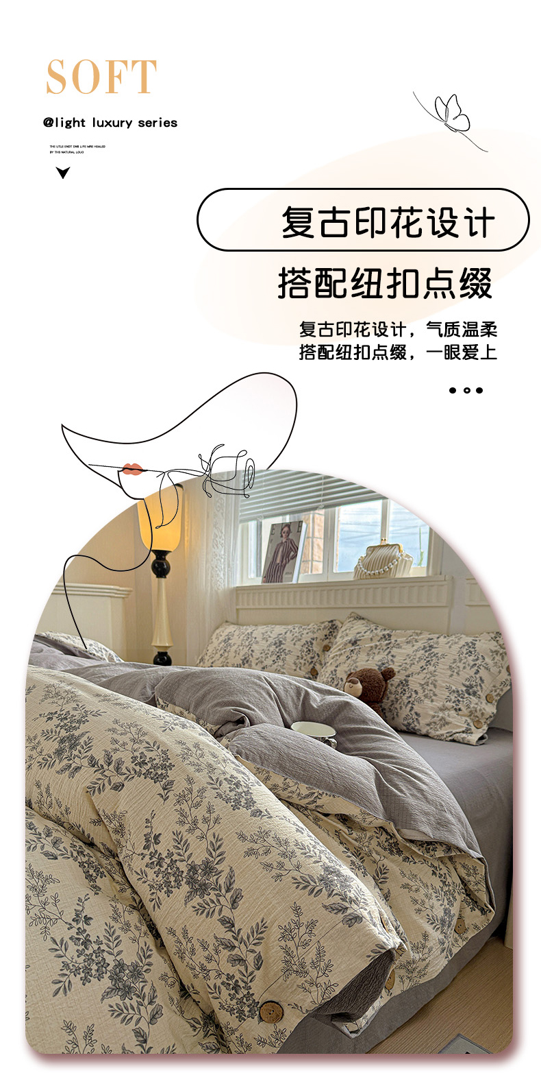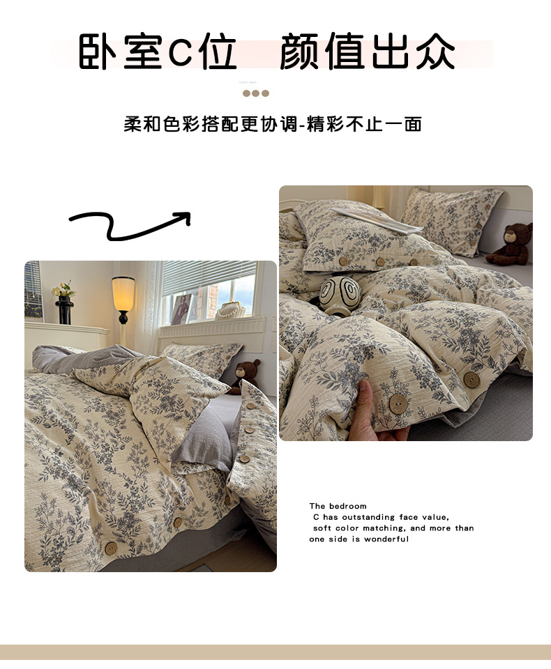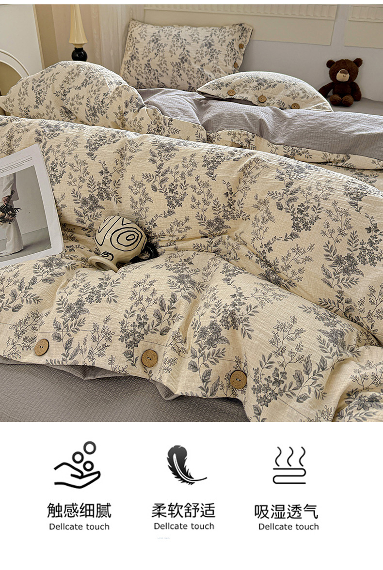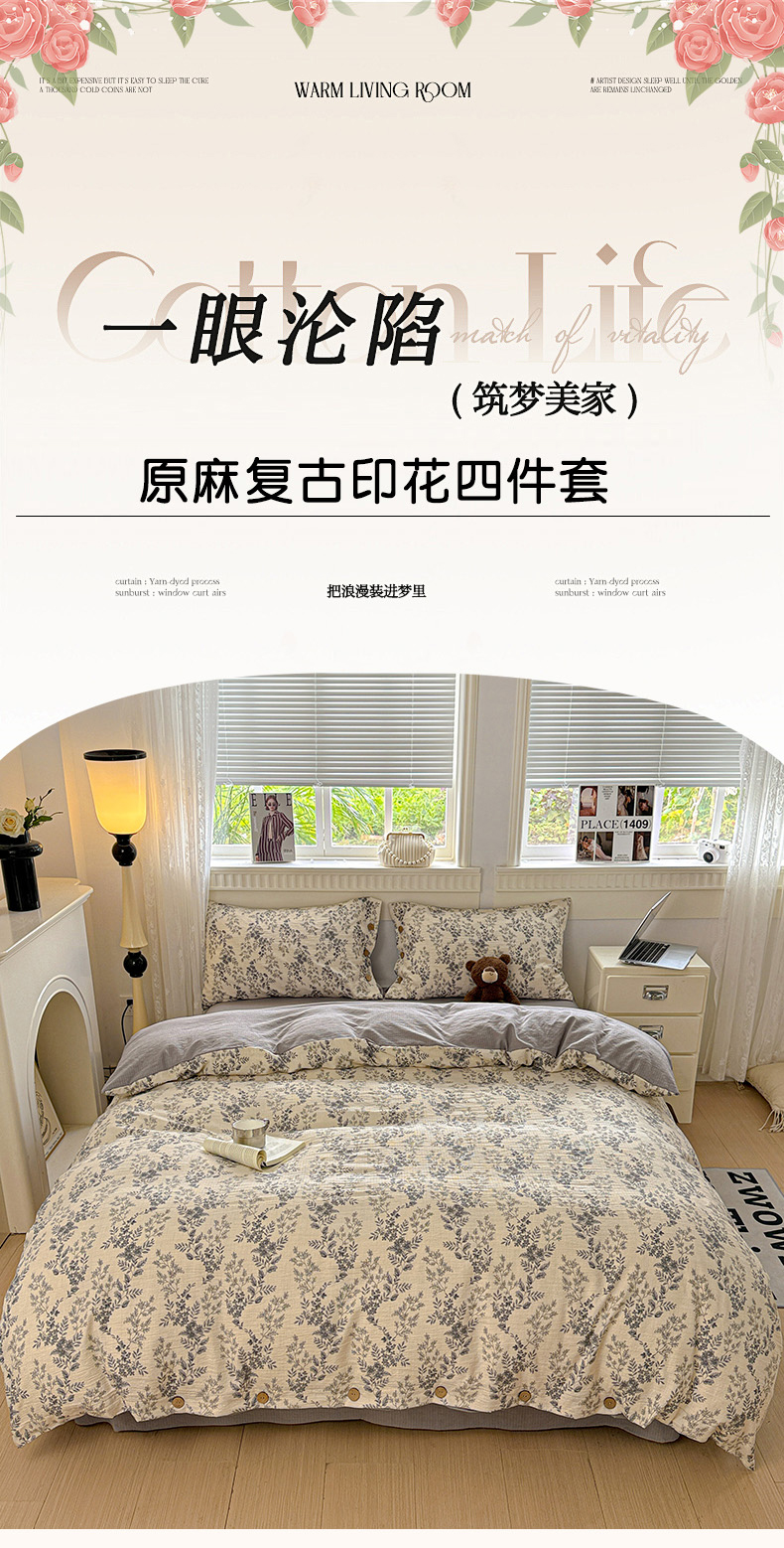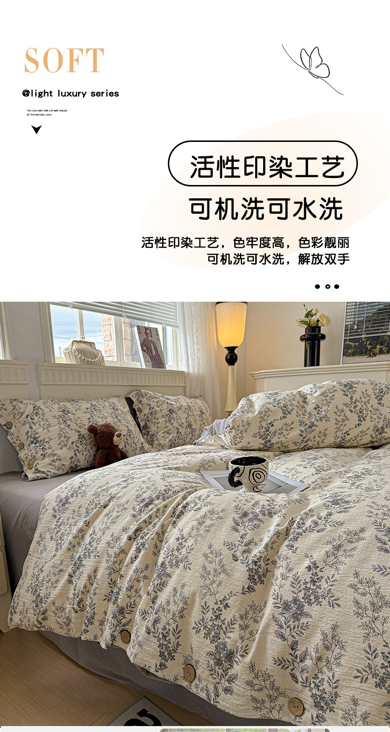 当前位置: 91家纺网 > 商品网购 > 床品套件 > 四件套 > 其它四件套 > 水墨江南 2025新款原麻复古印花纽扣款四件套 盛夏