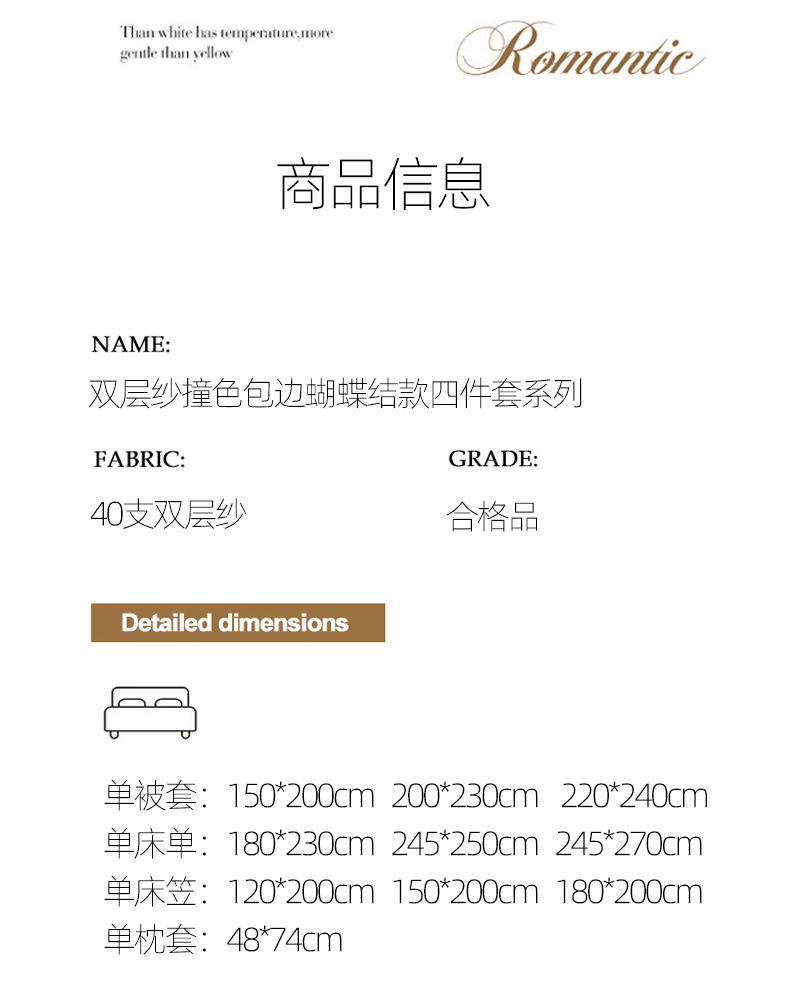 商品名称:(总)FORTWO家纺原创设计(FOR TWO家纺) 2025新款40支双层纱撞色包边蝴蝶结款单被套-海盐