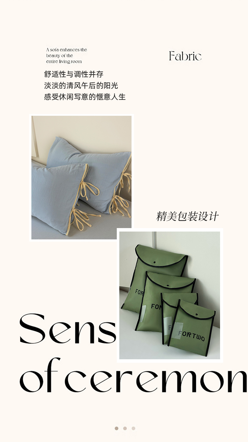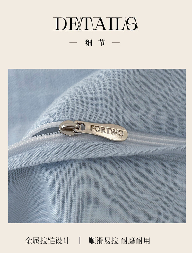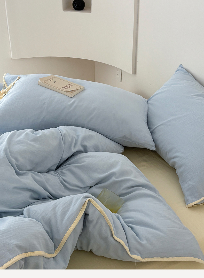 (总)FORTWO家纺原创设计(FOR TWO家纺) 2025新款40支双层纱撞色包边蝴蝶结款单被套-海盐
