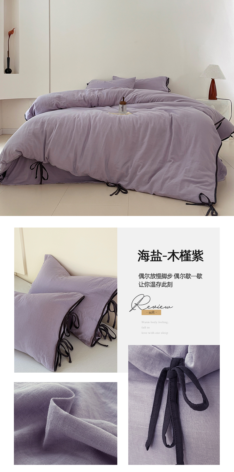 床上用品 > 床笠 > FORTWO家纺原创设计(FOR TWO家纺) 2025新款40支双层纱撞色包边蝴蝶结款单床笠-海盐 海盐-香草蓝