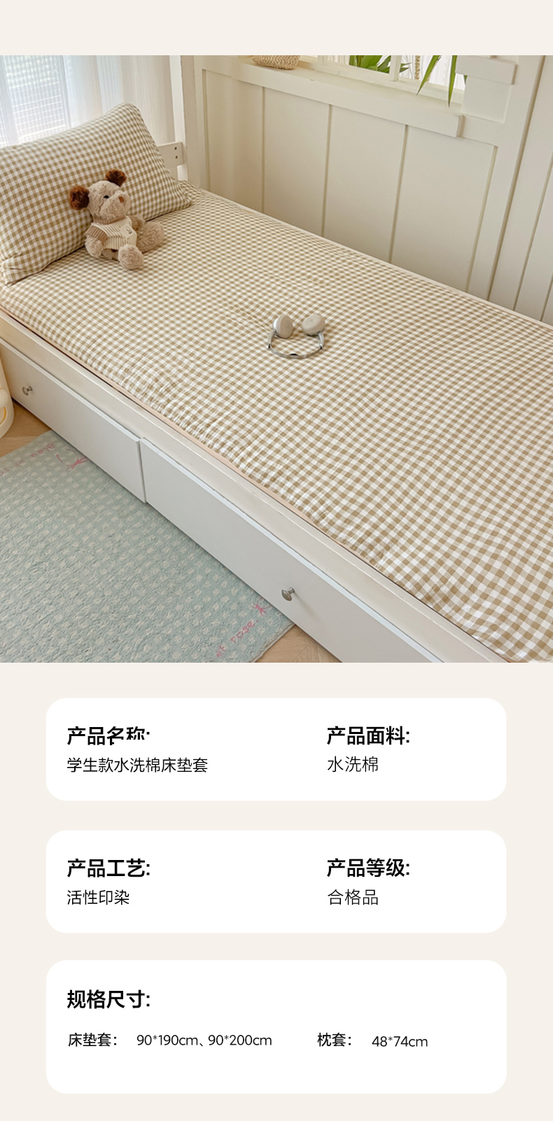 商品名称:(总)2025学生床垫套床褥套褥子套无印风水洗棉床垫套学生寝室套件宿舍单人90x200床垫套