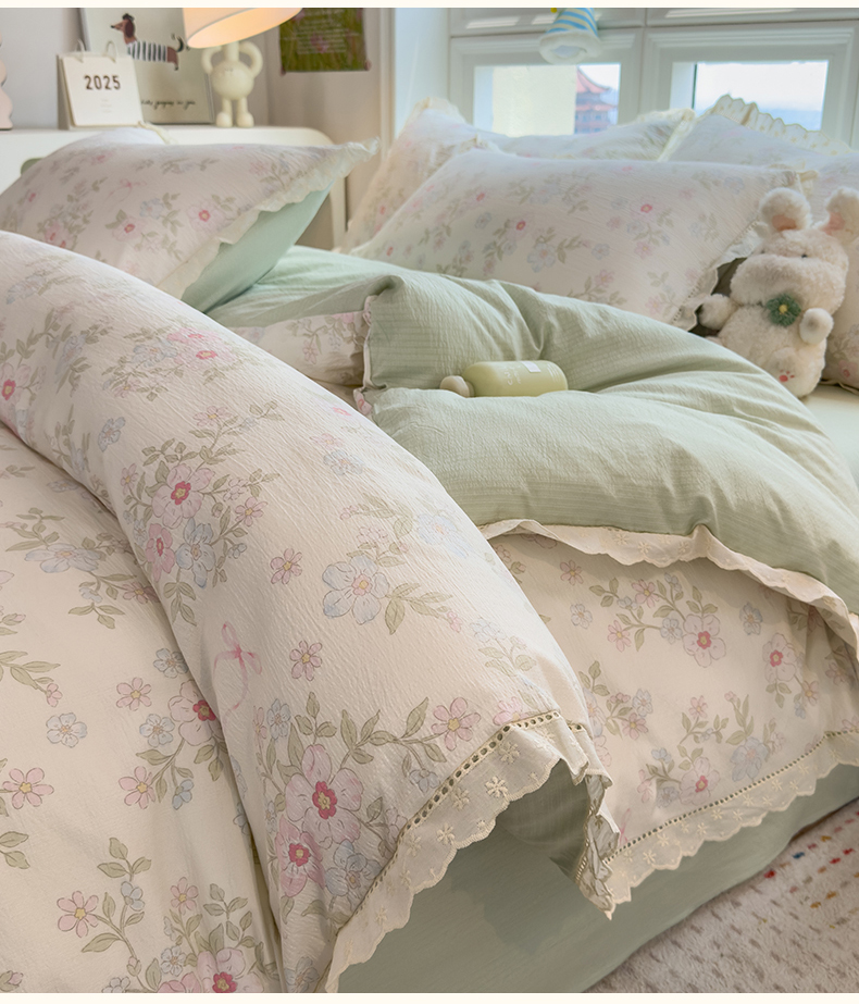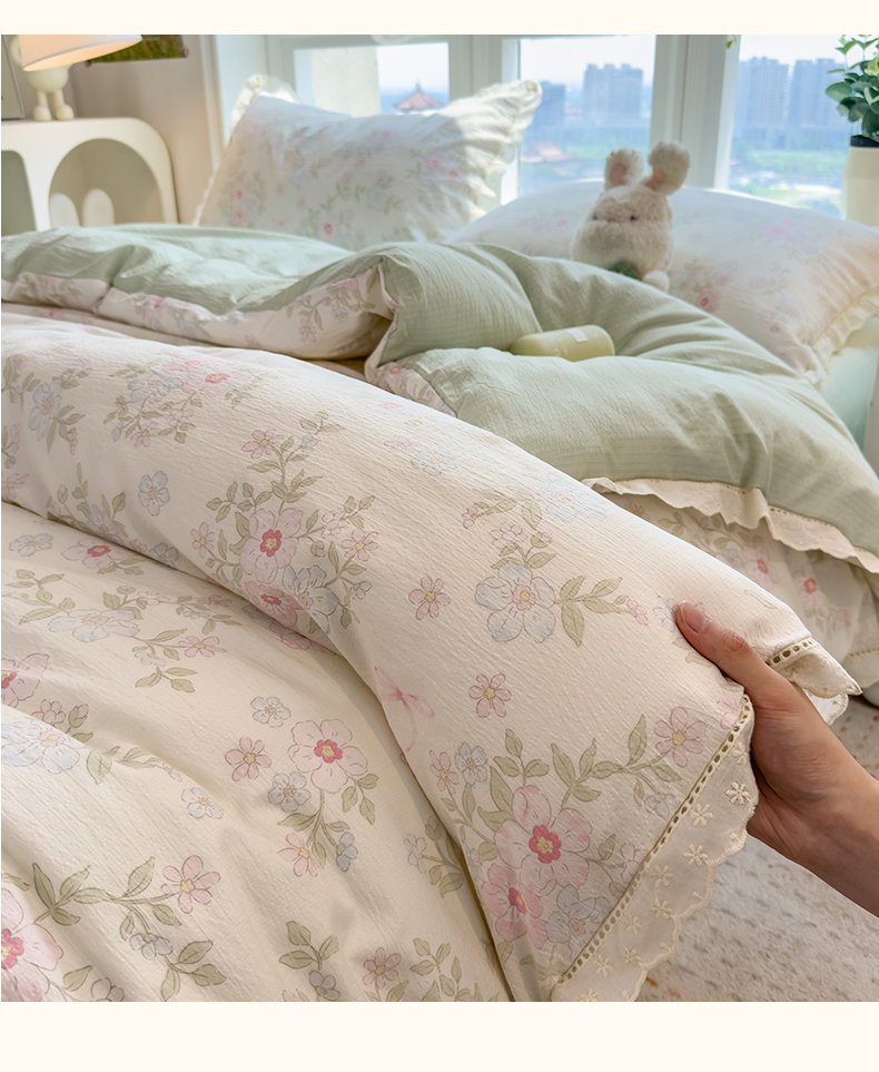 当前位置: 91家纺网 > 商品网购 > 床品套件 > 四件套 > 双层纱四件套 > 雯豆家纺2025新品皱皱双层纱四件套镂空花边款三件套 浪漫花语