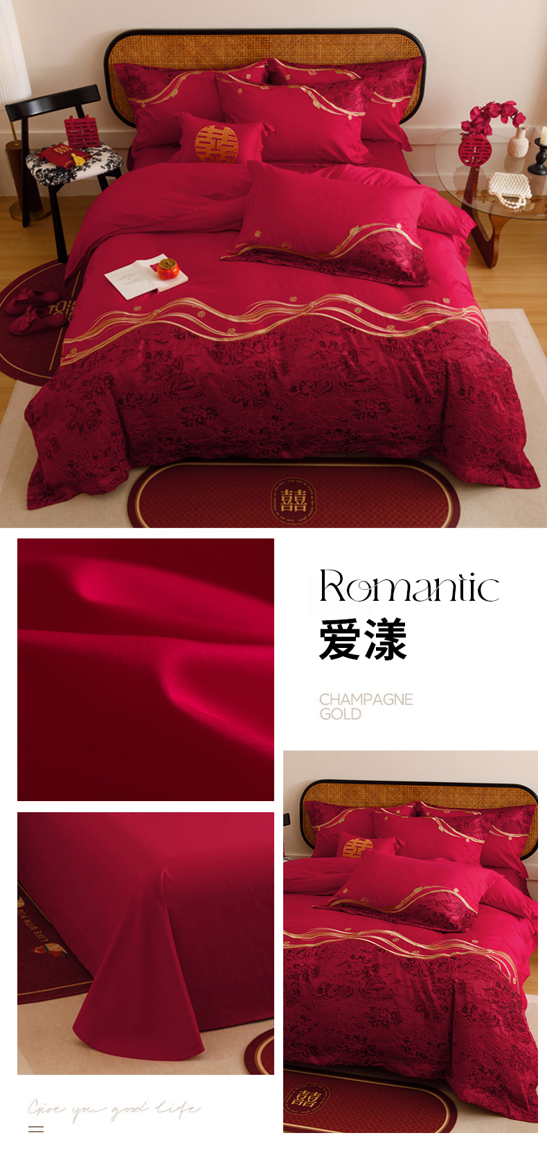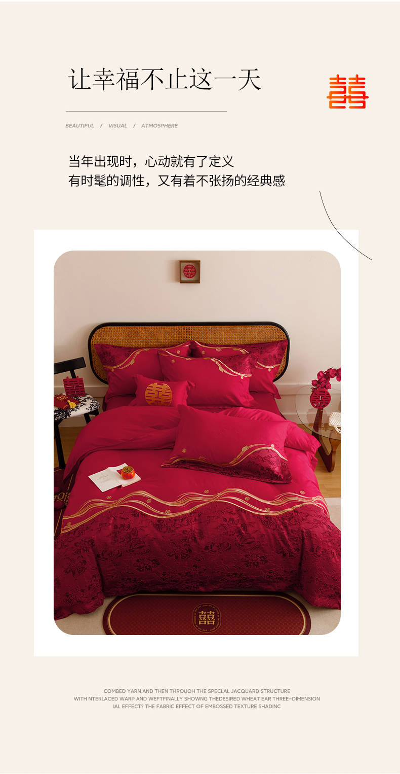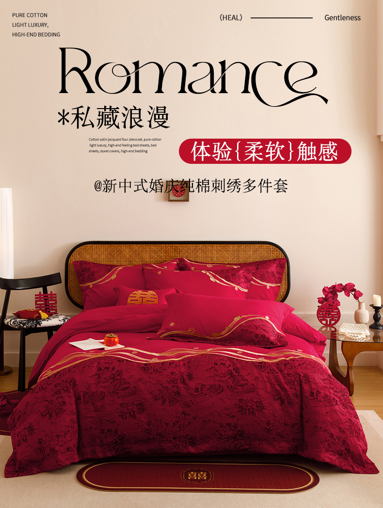 当前位置: 91家纺网 > 商品网购 > 床品套件 > 四件套 > 婚庆四件套 > 宏羽纺家纺 2025新款全棉100%全棉新中式婚庆多件套 纯棉时尚-爱漾