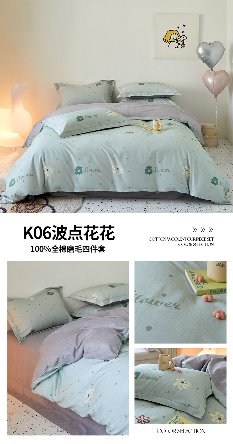 当前位置: 91家纺网 > 商品网购 > 床品套件 > 四件套 > 全棉普通四件套 > 梧桐树 2025新款100%全棉纯棉磨毛四件套-小清新系列 K06波点花花