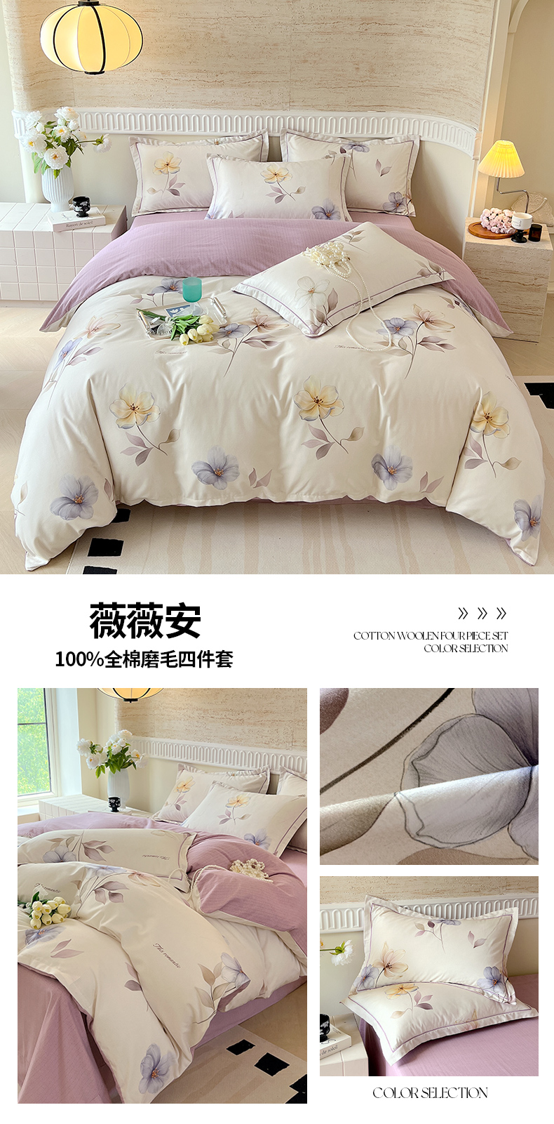 当前位置: 91家纺网 > 商品网购 > 床品套件 > 四件套 > 全棉普通四件套 > 梧桐树 2025新款全棉100%棉磨毛花卉简约系列四件套 椿山集