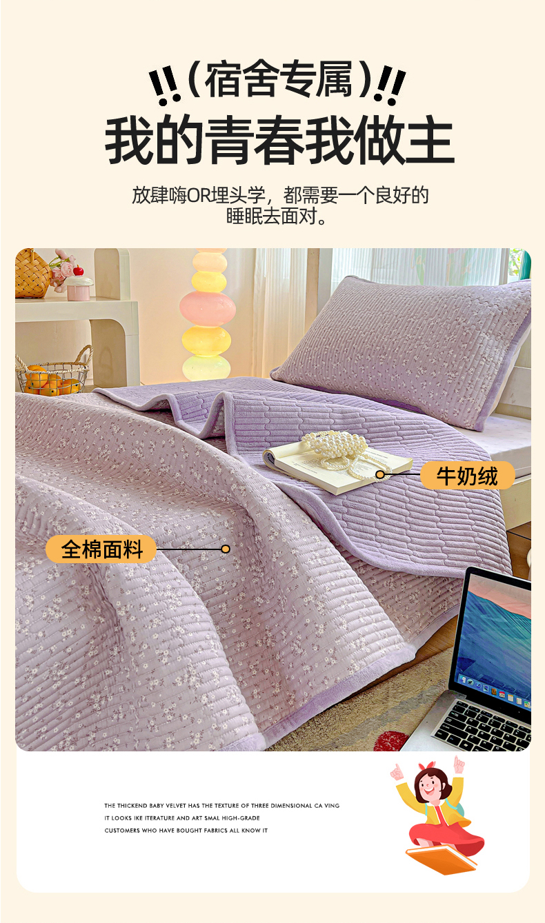恒尚居 2025新款学生床盖纯棉牛奶绒 正反两用夹棉床单床垫-秋冬款 四季通用-系列二 花言【A纯棉-B宝宝绒】