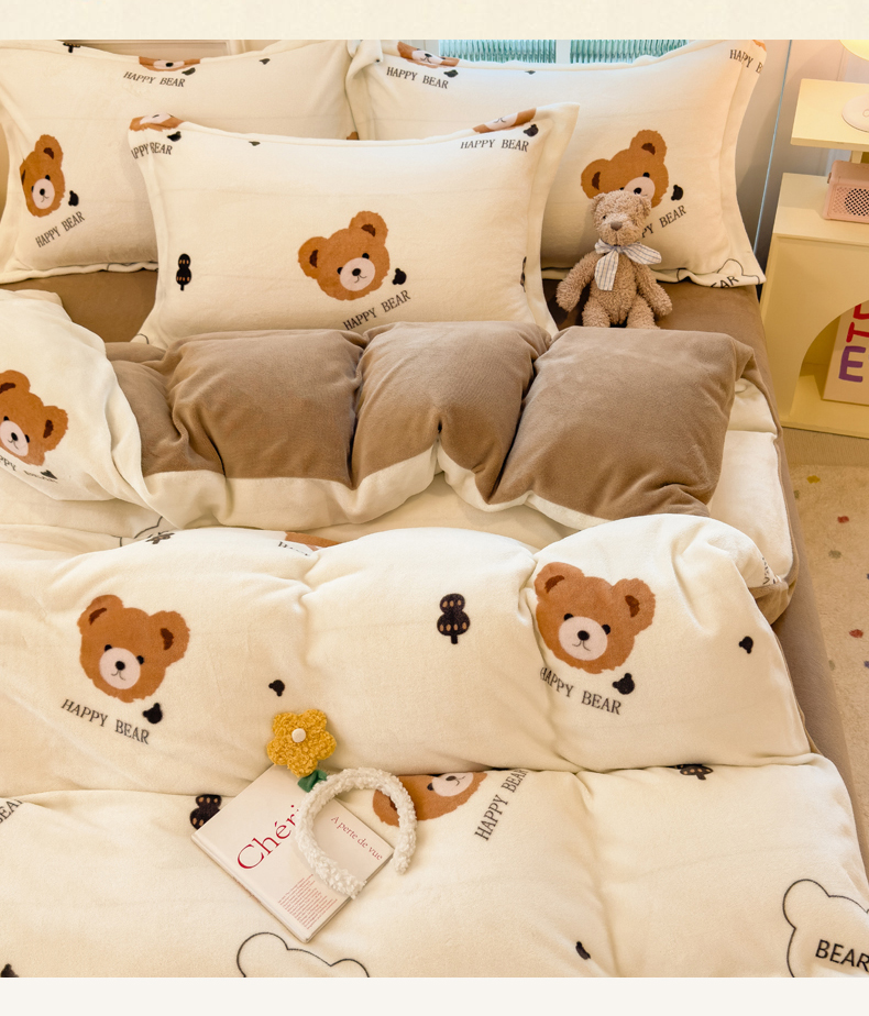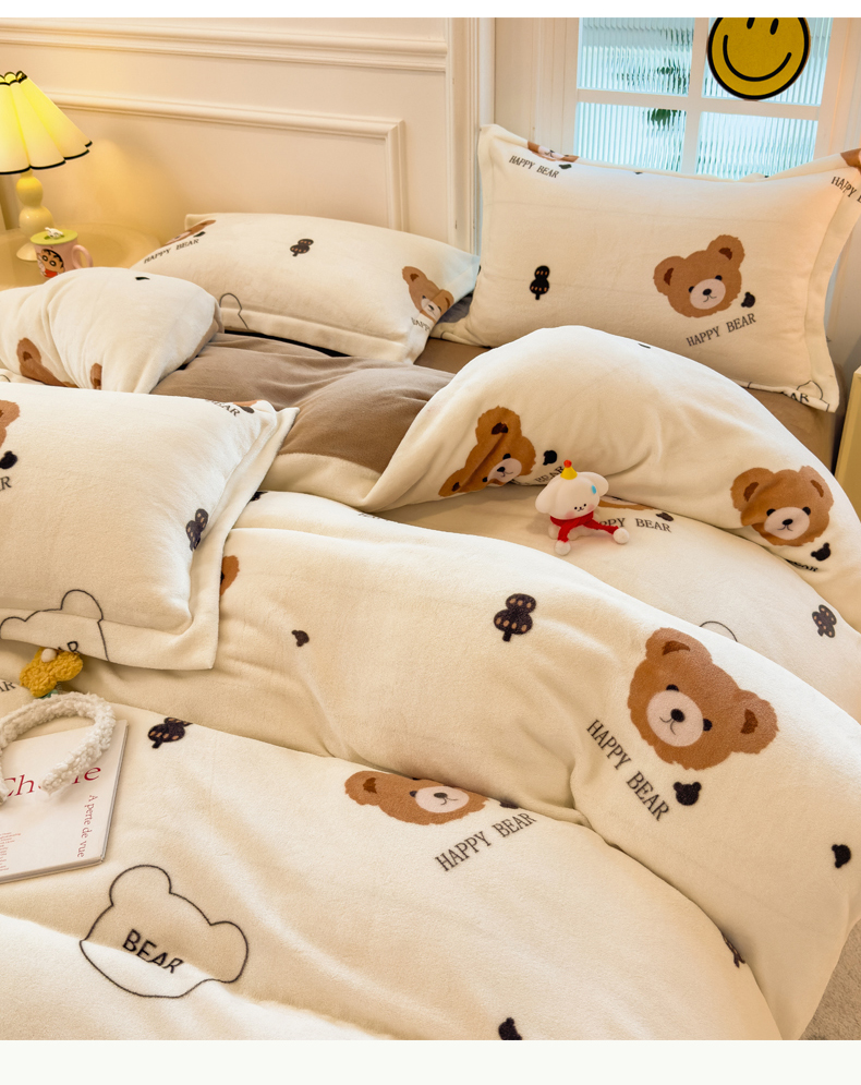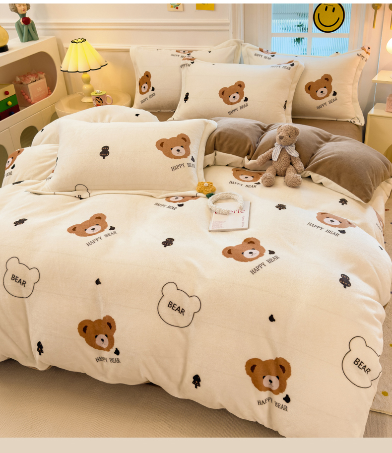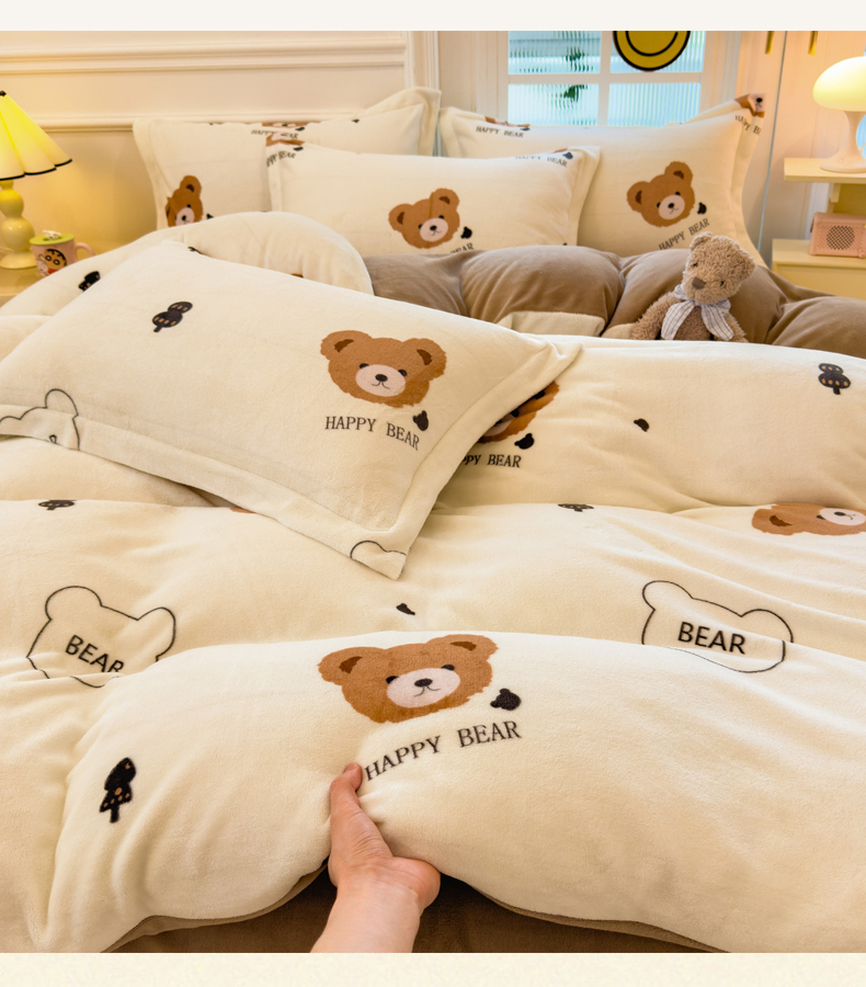 当前位置: 91家纺网 > 商品网购 > 床品套件 > 四件套 > 牛奶绒四件套 > 丝羽坊 2025新款200克加厚小清新牛奶绒床单款 床笠款四件套 被套 呆萌熊